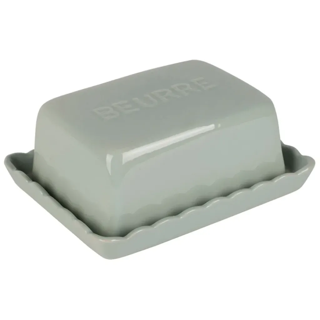 Découvrez une touche de charme rustique pour votre table avec ce beurrier en grès vert d’eau.