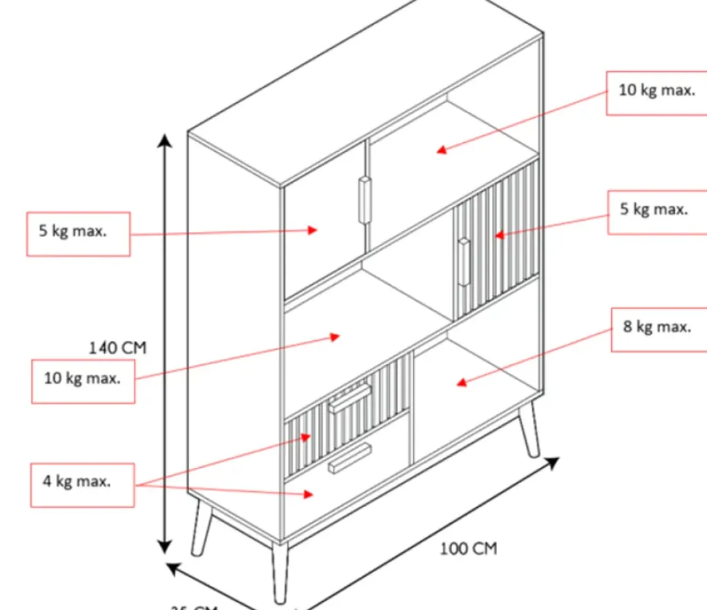 Ce meuble polyvalent de 140 cm de hauteur allie design vintage et fonctionnalité moderne.