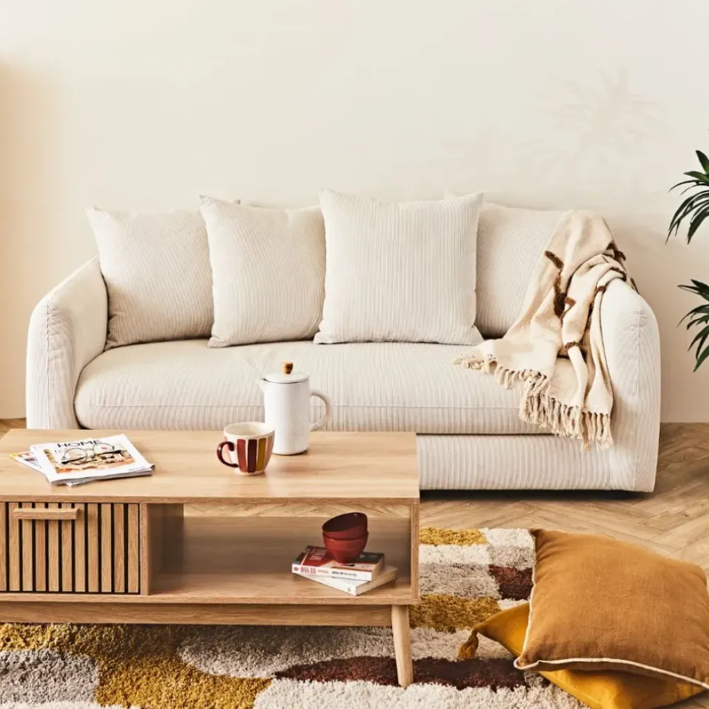 Son tissu effet velours côtelé et sa couleur beige apporteront une touche de modernité à votre intérieur.