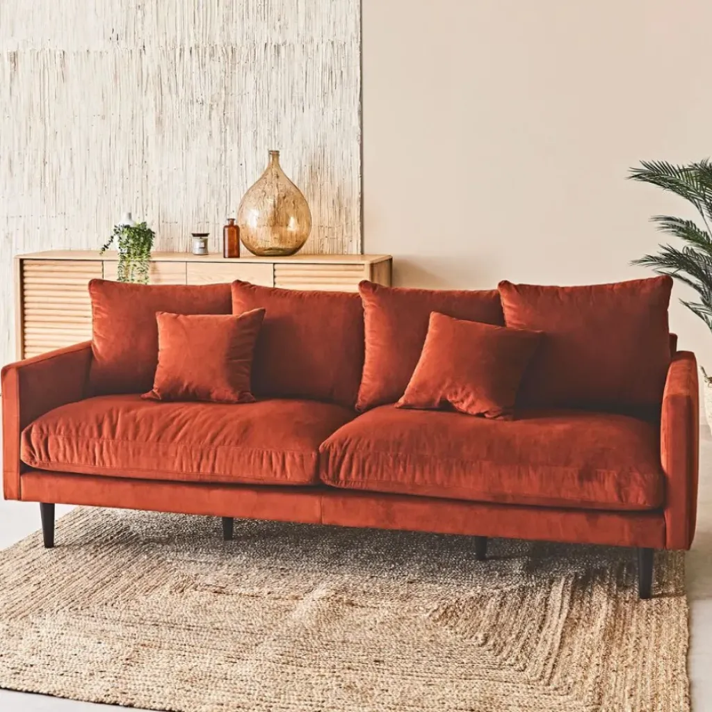 Sa ligne élancée associé à tous ses coussins, fait de lui un canapé parfait pour se détendre.