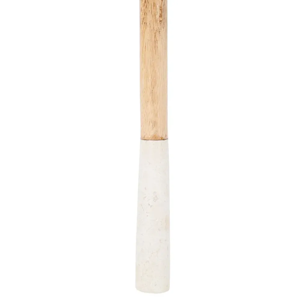 Le marbre donne une sensation de fraîcheur et de robustesse, tandis que le bois de manguier, avec ses nuances dorées, offre une prise en main confortable et une résistance appréciable.