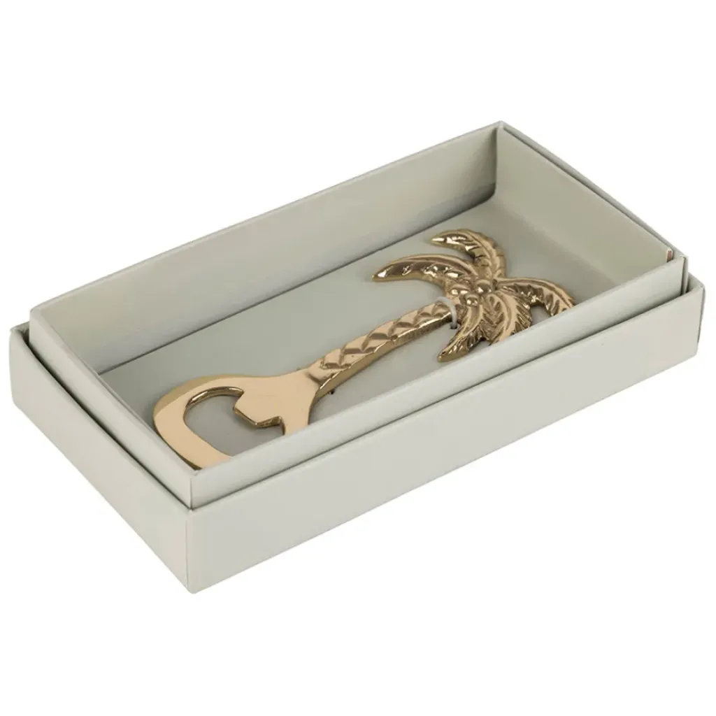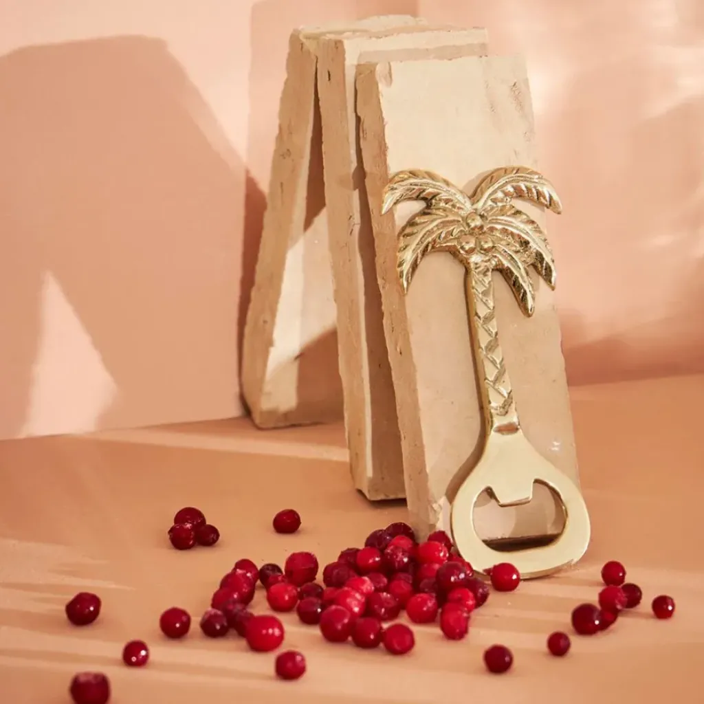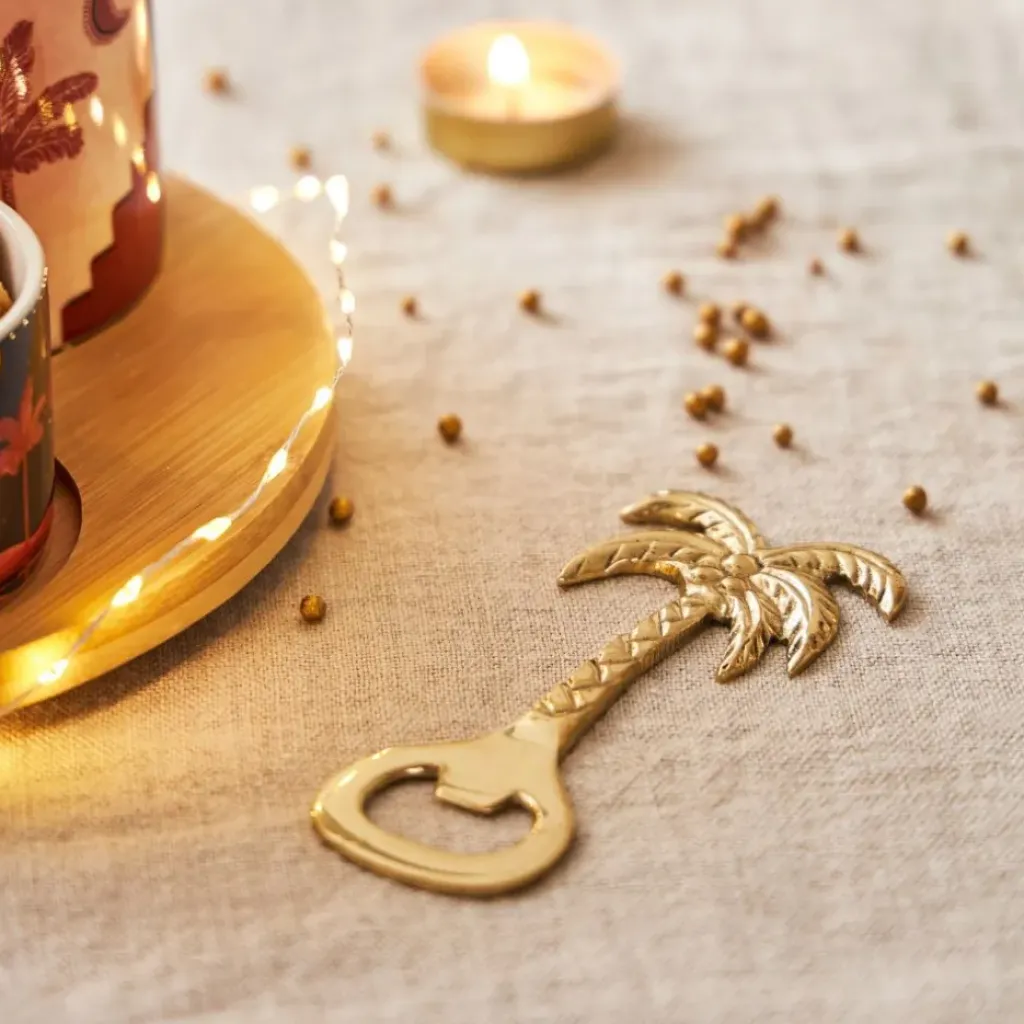 Apportez une ambiance tropicale à votre quotidien et laissez-vous transporter vers des rivages lointains avec le Décapsuleur palmier doré – Tropic Étoile.Laiton.