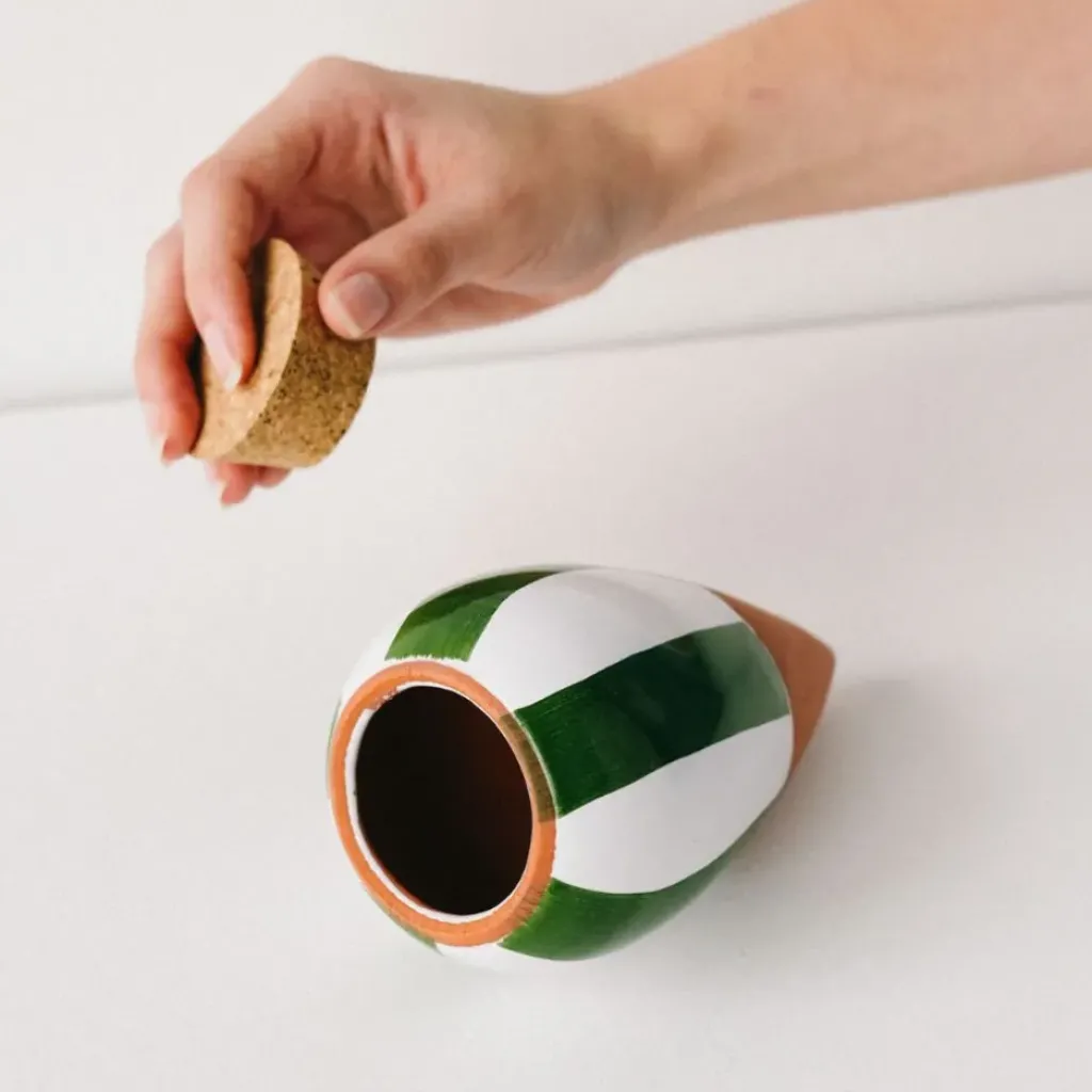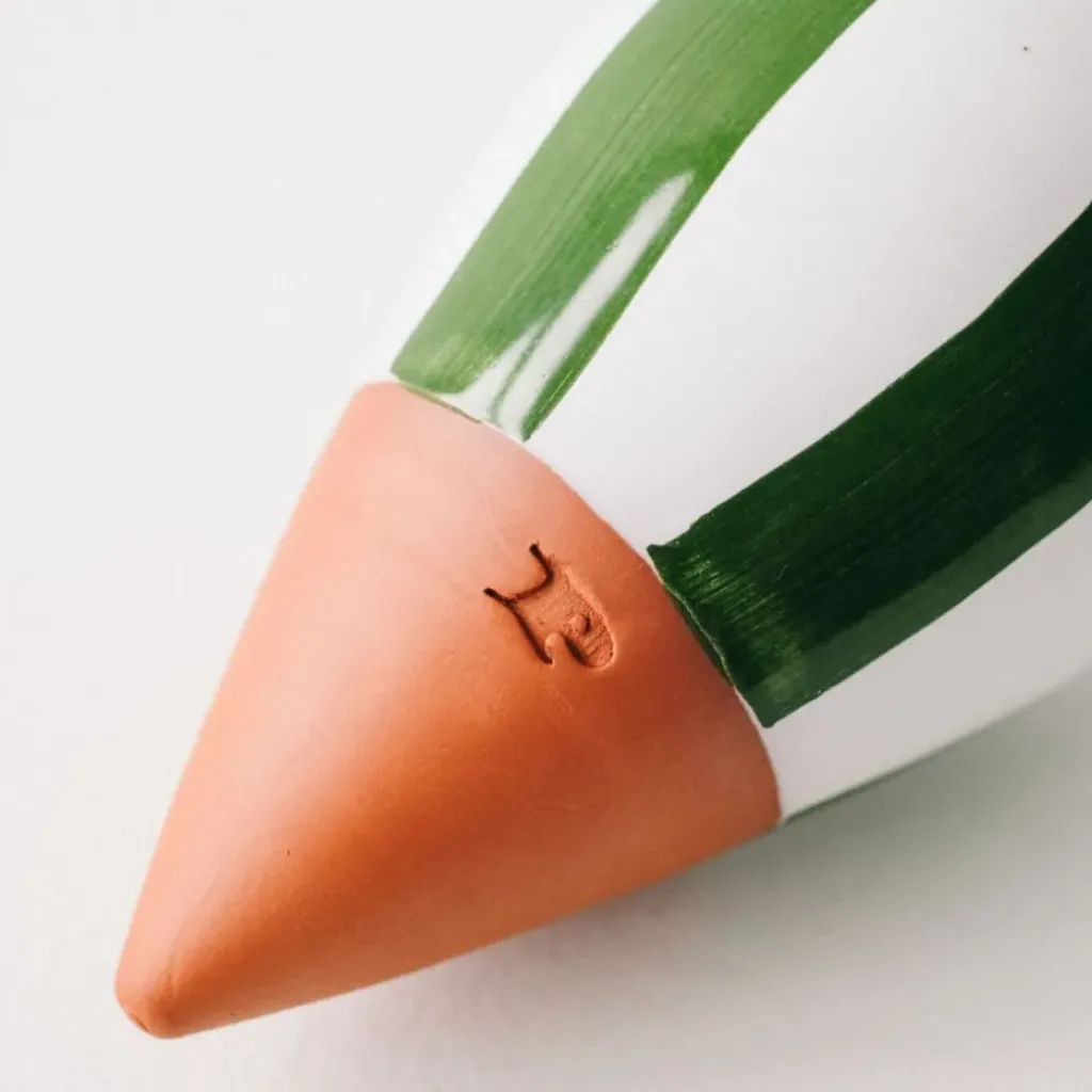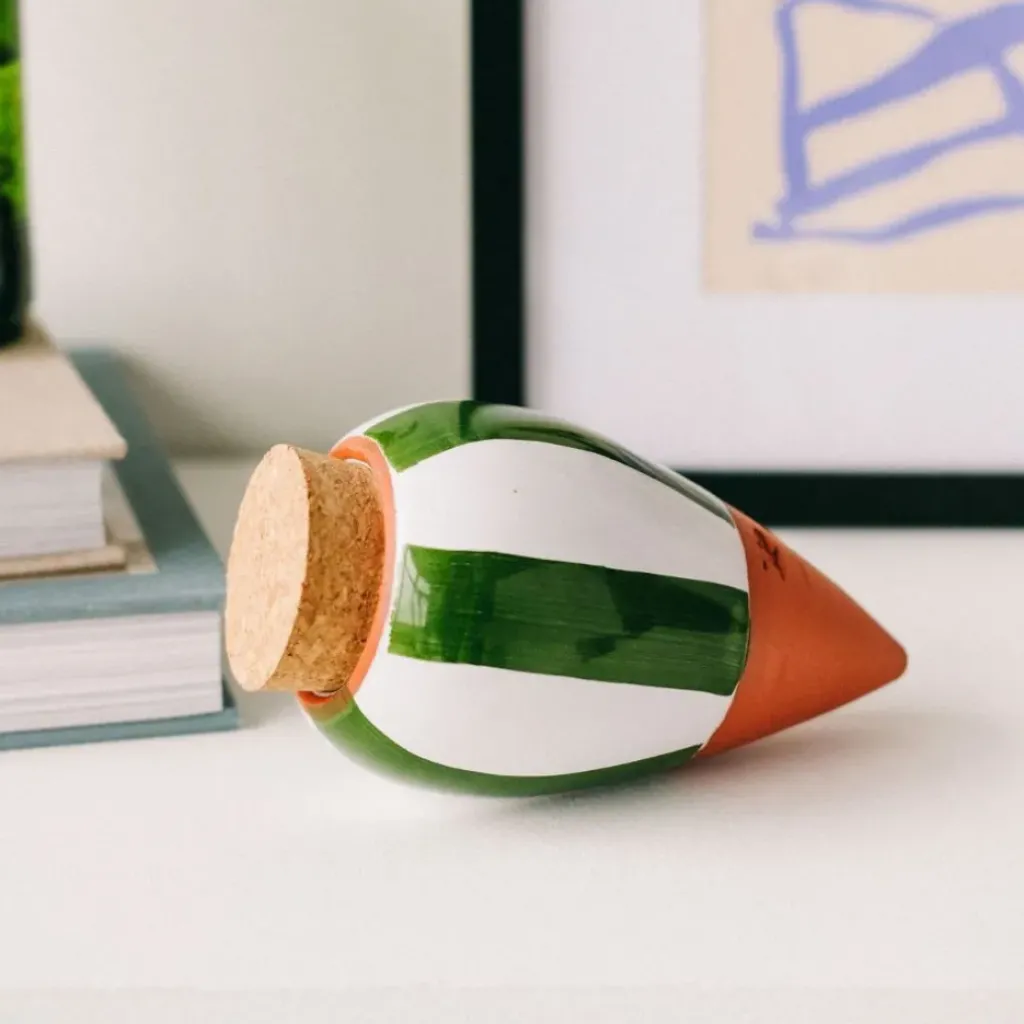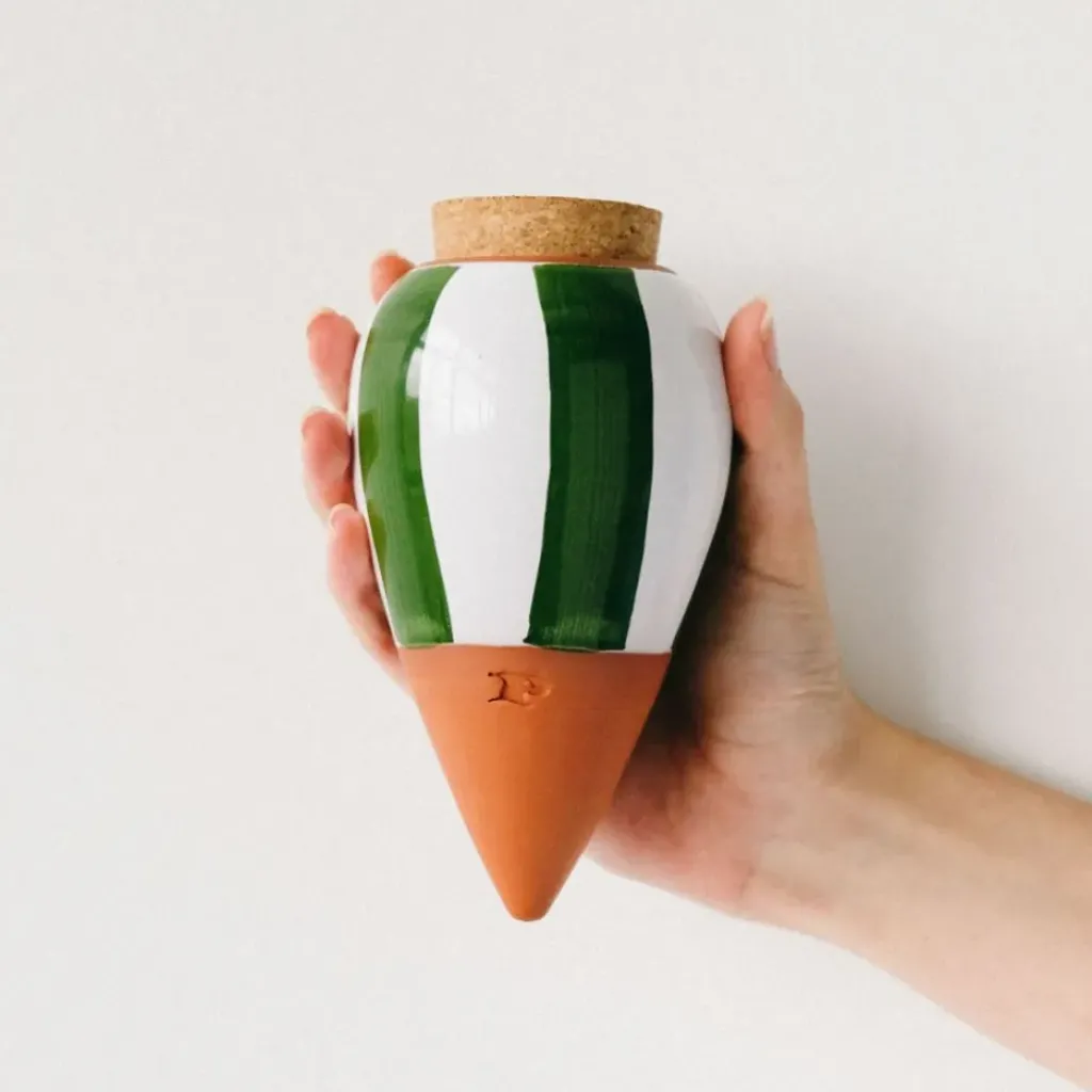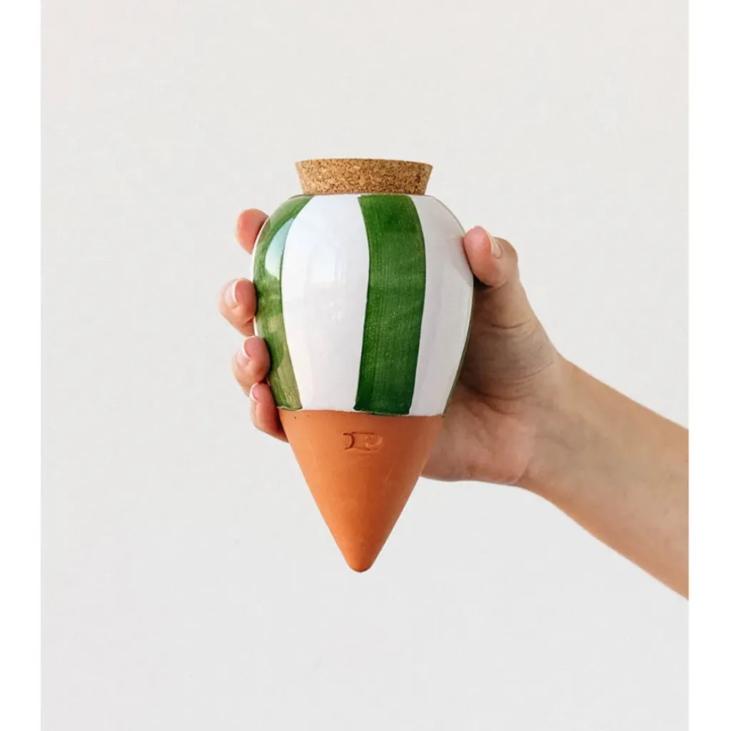 Découvrez notre diffuseur d’eau en argile rayé vert et blanc de 25cl, une pièce charmante et fonctionnelle idéale pour les amateurs de jardinage ou ceux qui souhaitent apporter une touche de nature à leur intérieur.
