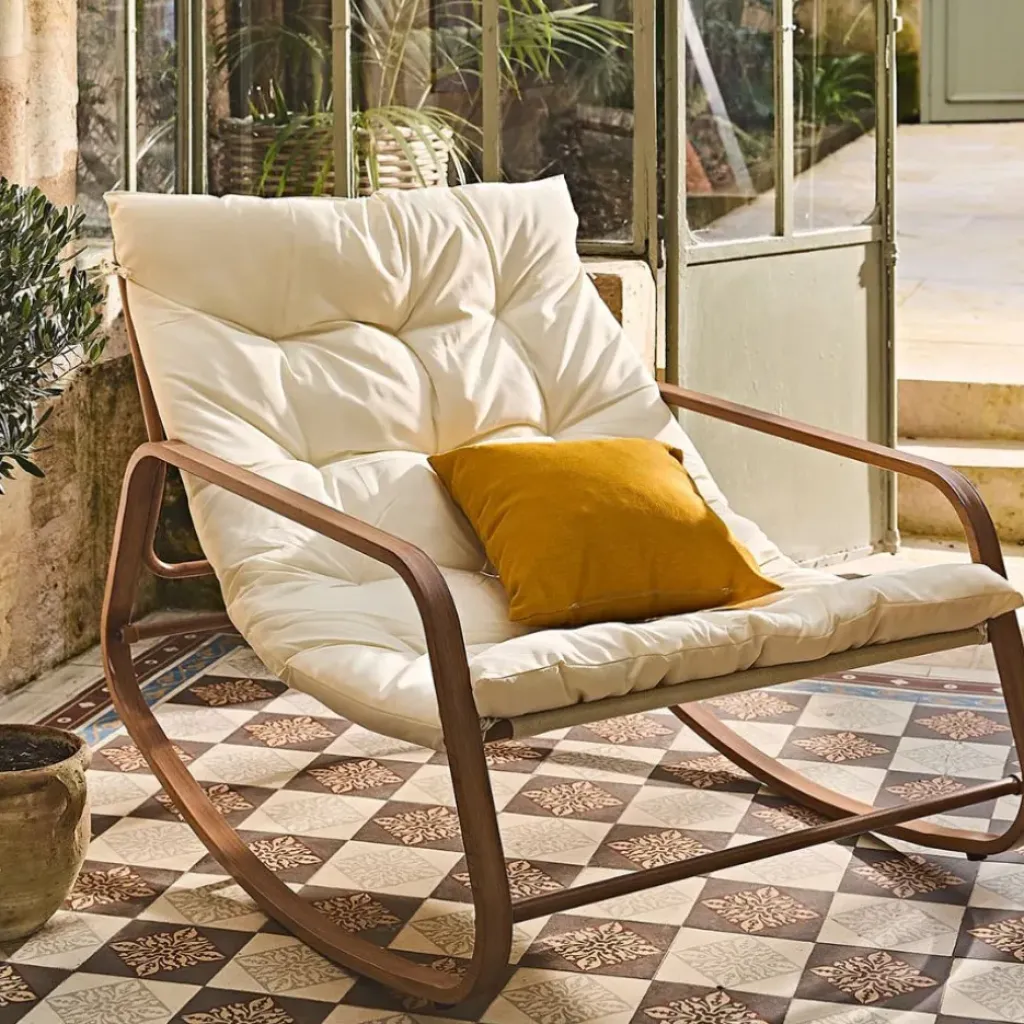Découvrez ce magnifique fauteuil de jardin à bascule, un mélange parfait de style et de confort, conçu aussi bien pour l’extérieur que pour l’intérieur.