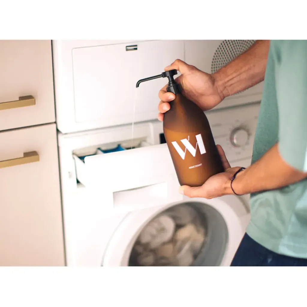 Pour un esprit déco même jusqu’à la buanderie, son joli flacon en verre classique de 1000mL est rechargeable.Plus de 30% de savon. Valeur actuelle 72% de savon.