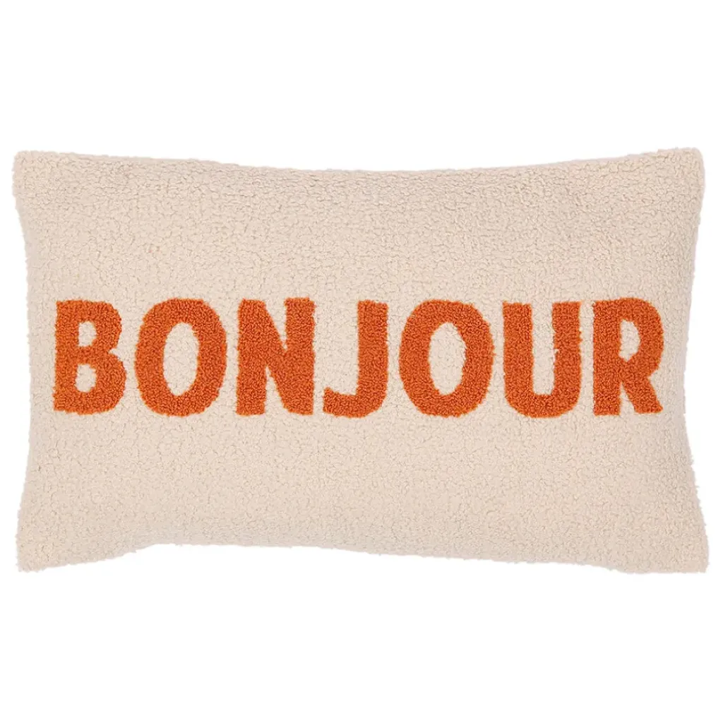 Découvrez notre coussin en polyester écru de 50x30cm qui apportera une touche d’humour à votre intérieur.