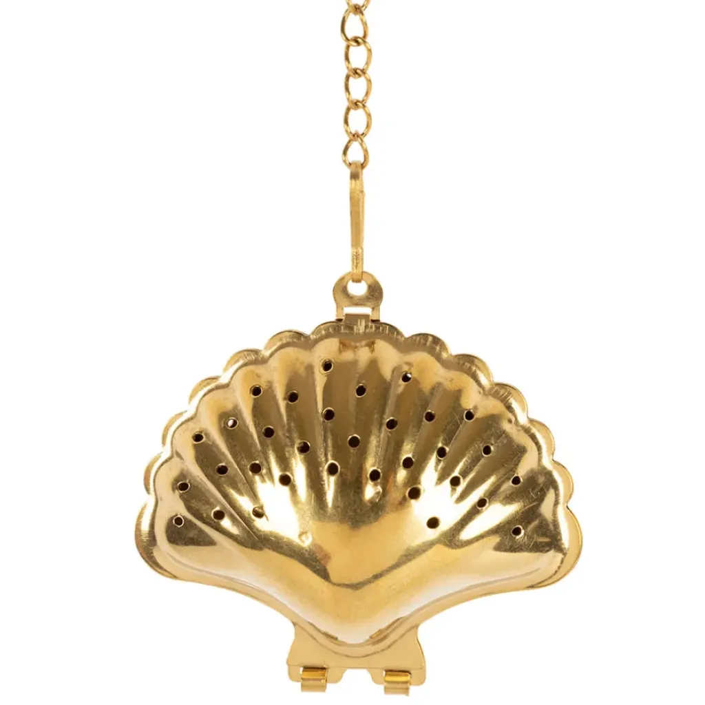Découvrez notre infuseur de thé avec chaîne en inox doré – Coquillage, un véritable bijou pour vos moments de détente.