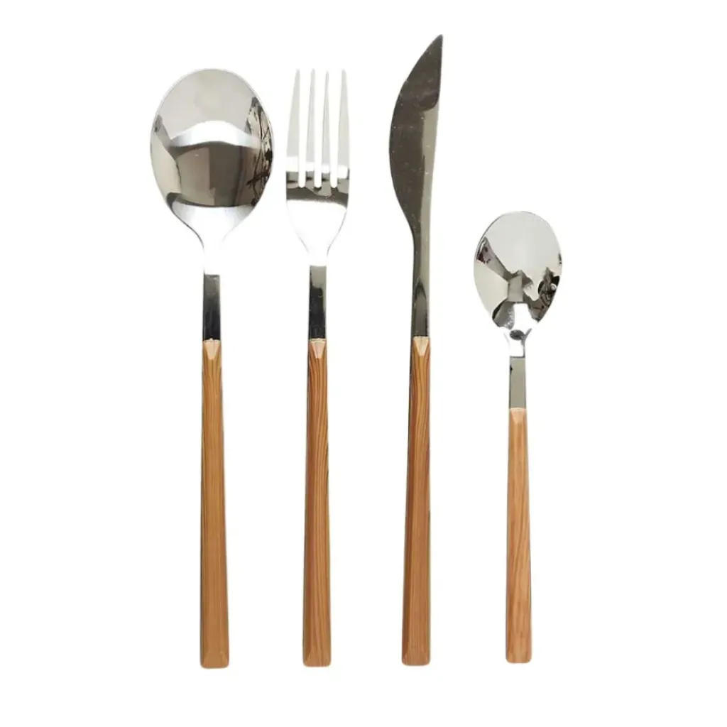 Vous adorez surprendre vos convives autour d’une belle tablée ? Testez cette ménagère composée de 16 couverts dorés effet bois, le succès sera au rendez-vous.Acier Inoxydable
