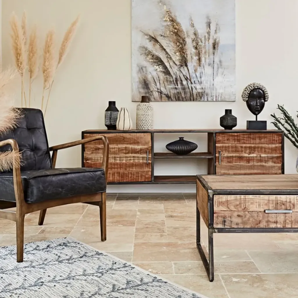 Fabriquée en bois d’acacia massif et en métal, cette pièce s’intègre bien