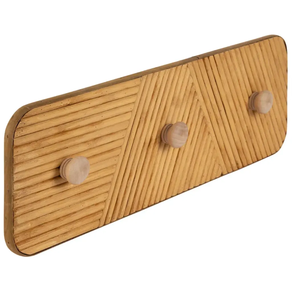 Avec ses 3 crochets, cette patère est à la fois pratique et esthétique, offrant un espace de rangement pour suspendre vos vêtements, sacs, ou autres accessoires.Bambou et sapin et contreplaqué.