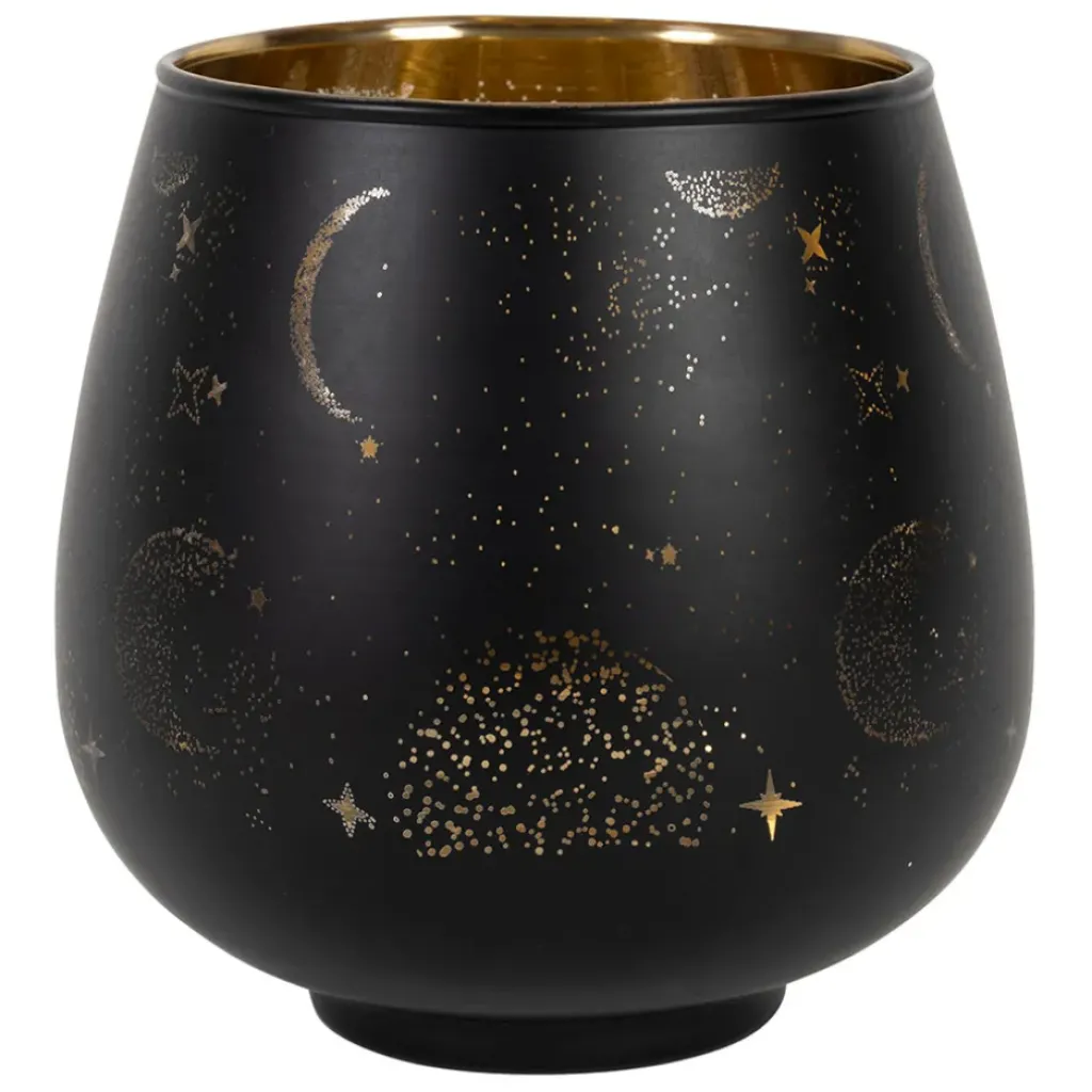 Découvrez le parfait compagnon pour illuminer et sublimer votre intérieur : le photophore en verre noir mat et doré.