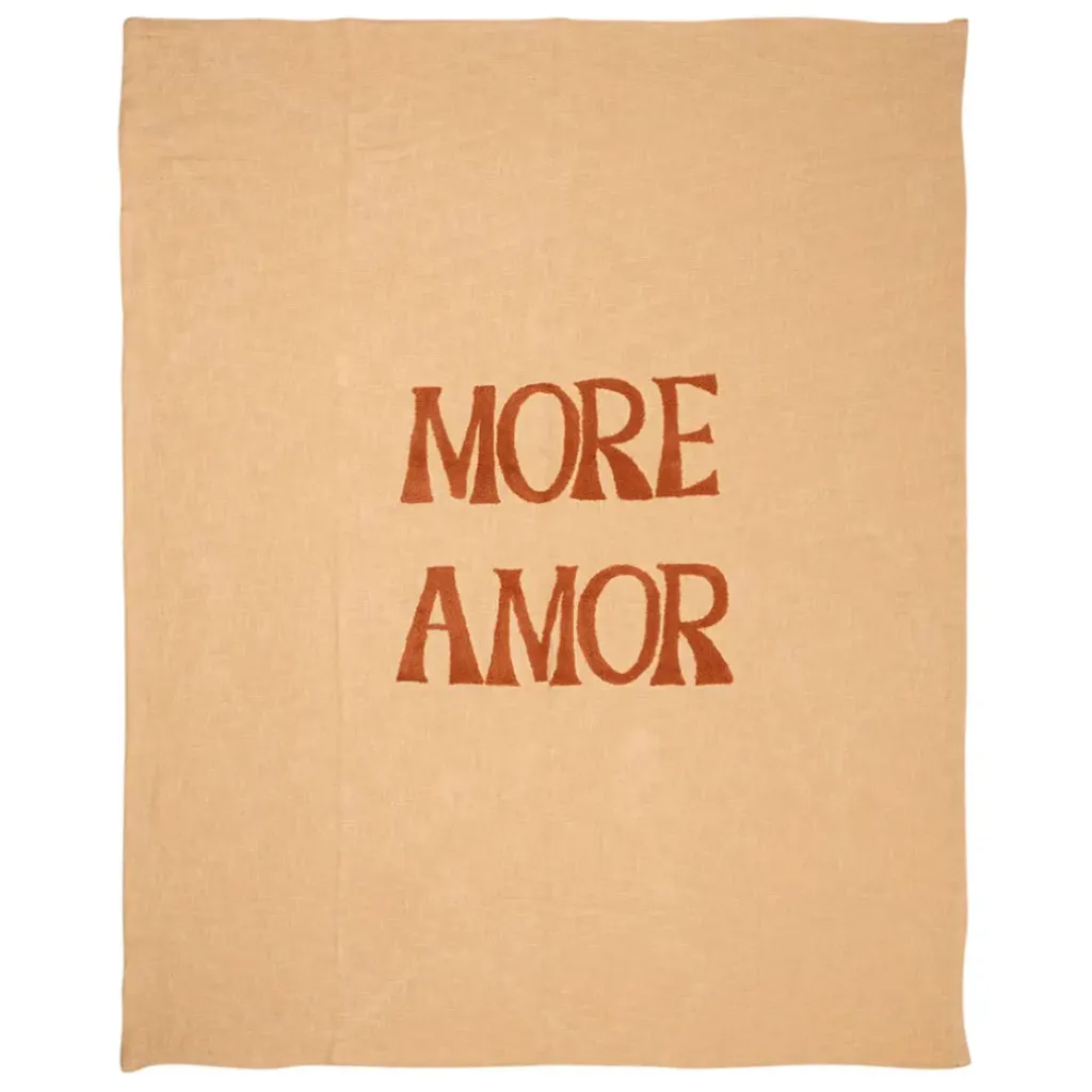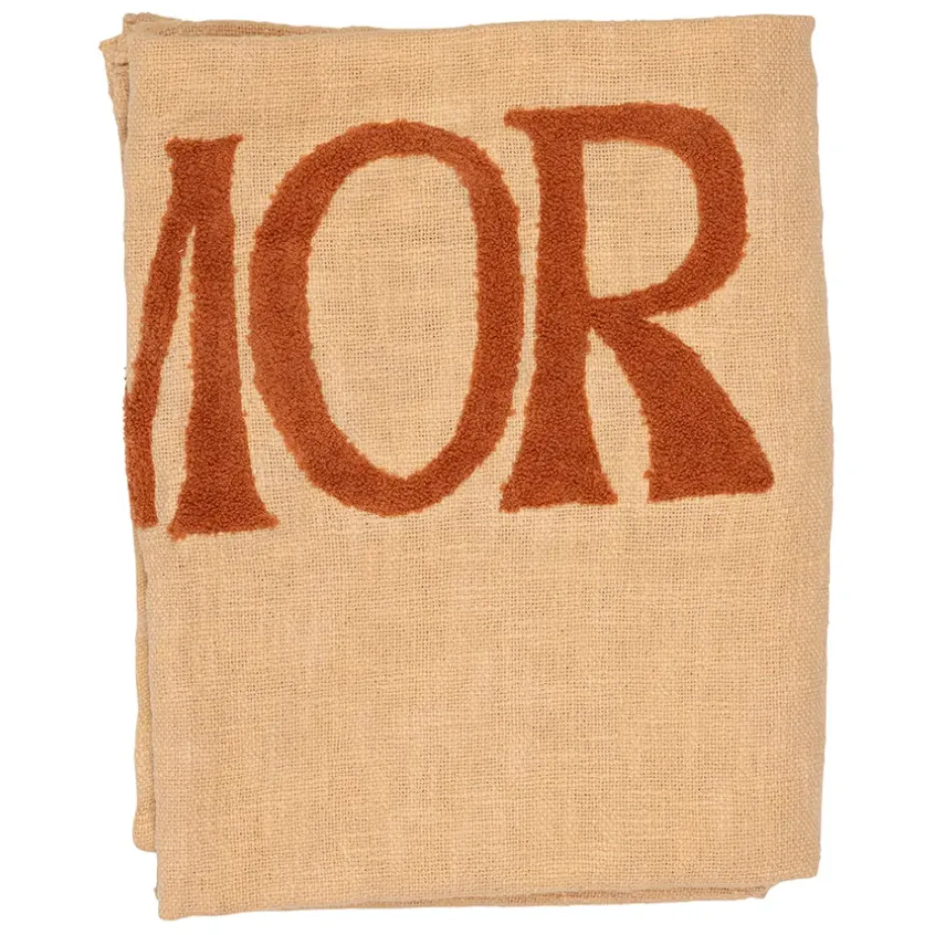 Découvrez notre magnifique plaid brodé ‘more amore’ en coton corail de dimensions 170×130 cm.