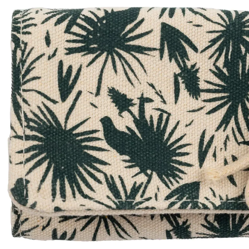 Venez découvrir notre Pochette bijoux voyage palmea ecru+vert foncé 20x24cm coton de la marque SEMA Design à découvrir sur Fabrique de Styles.Coton / Cotton