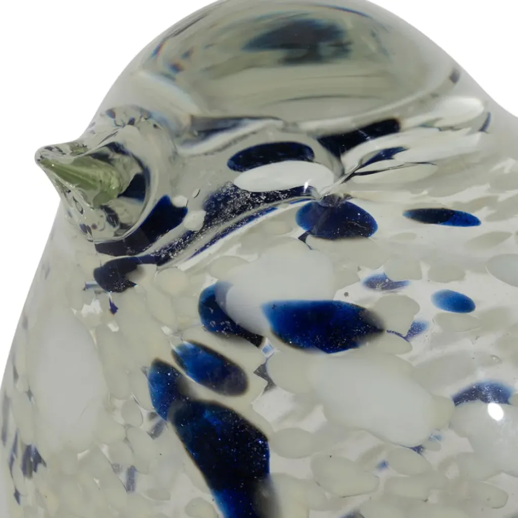 Avec ses teintes de verre blanc et bleu pailleté, il attire le regard et se métamorphose en un véritable objet de décoration.