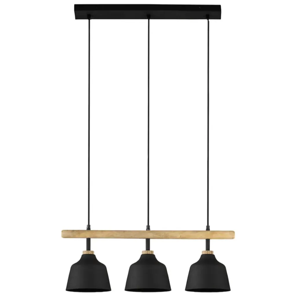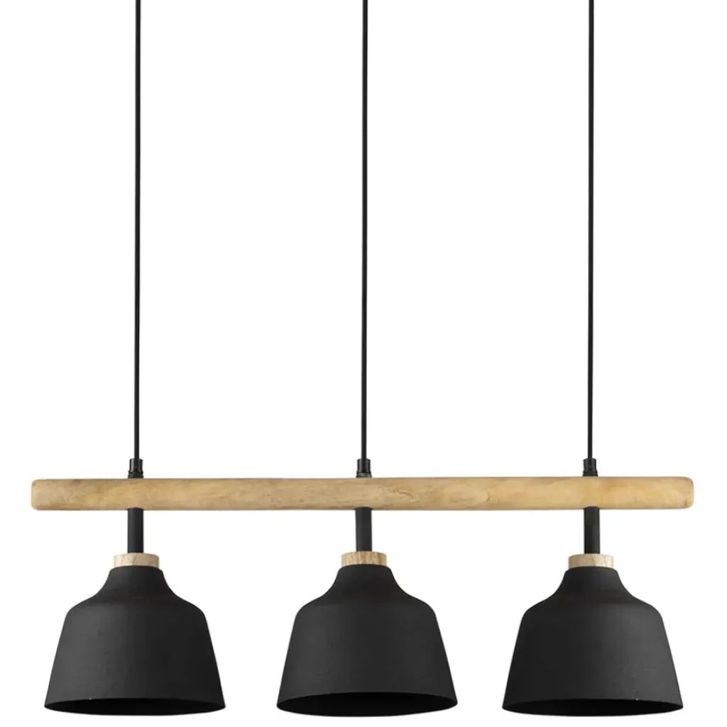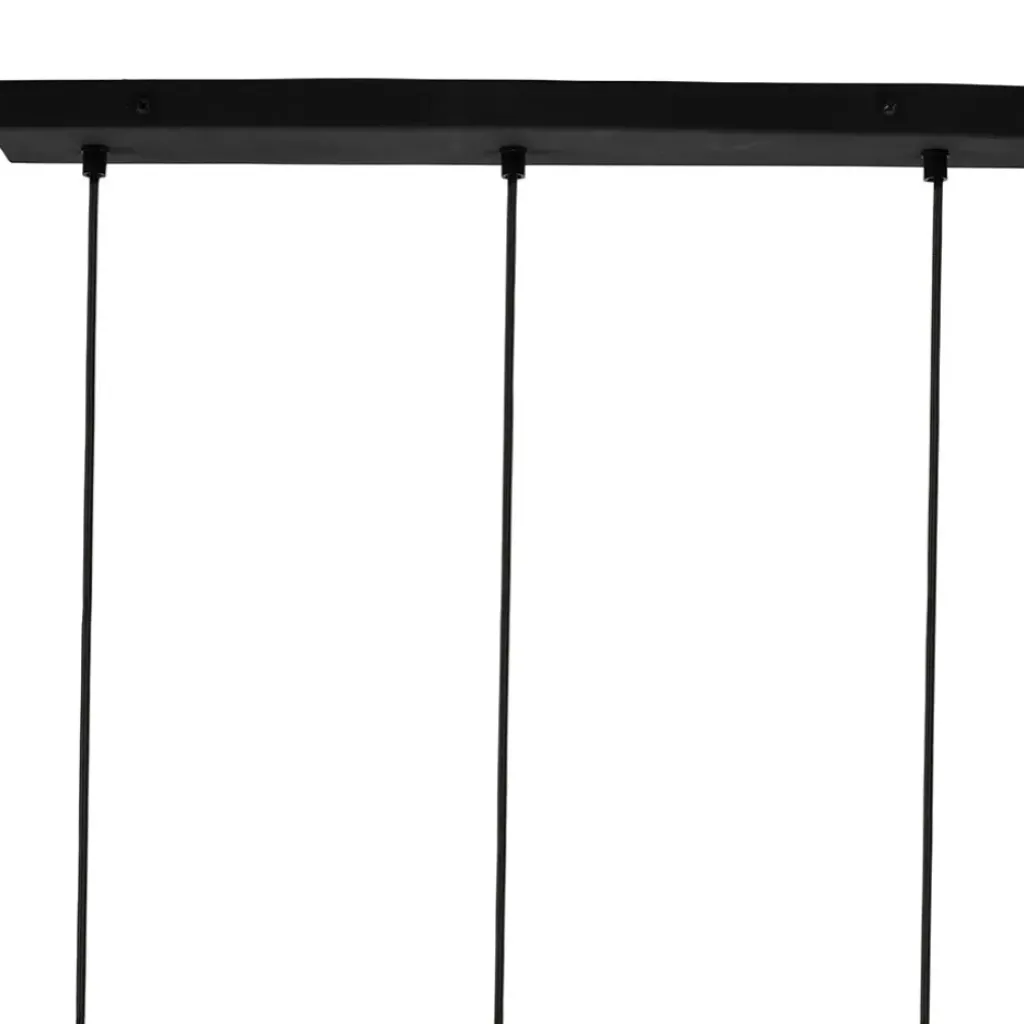 Suspension en fer et manguier noir mat, composée de 3 feux, d’une longueur de 121 cm – ferese.METAL ET VERRE