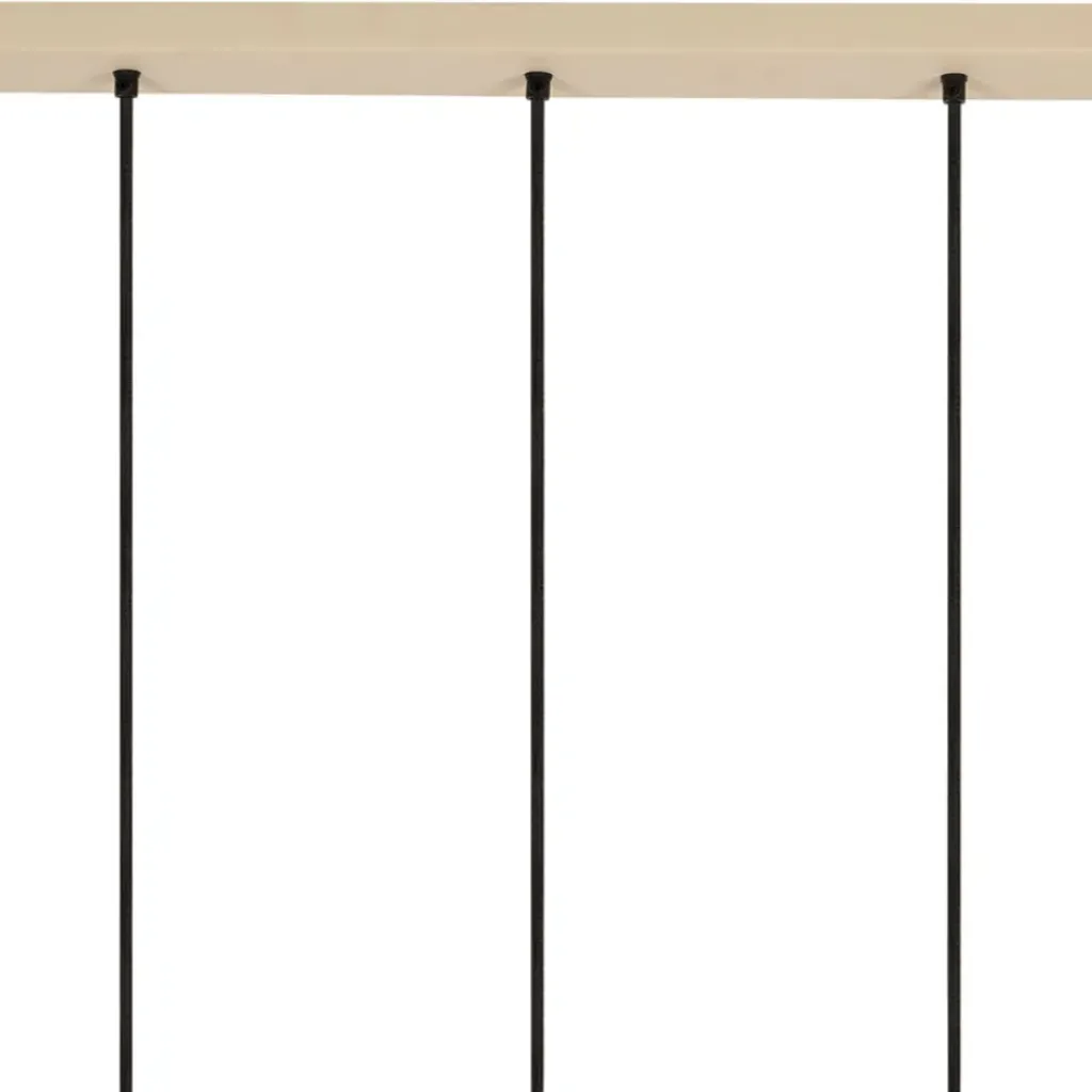 Découvrez notre sublime suspension composée de cinq lampes en fer et manguier sable, mesurant 125 cm de hauteur.