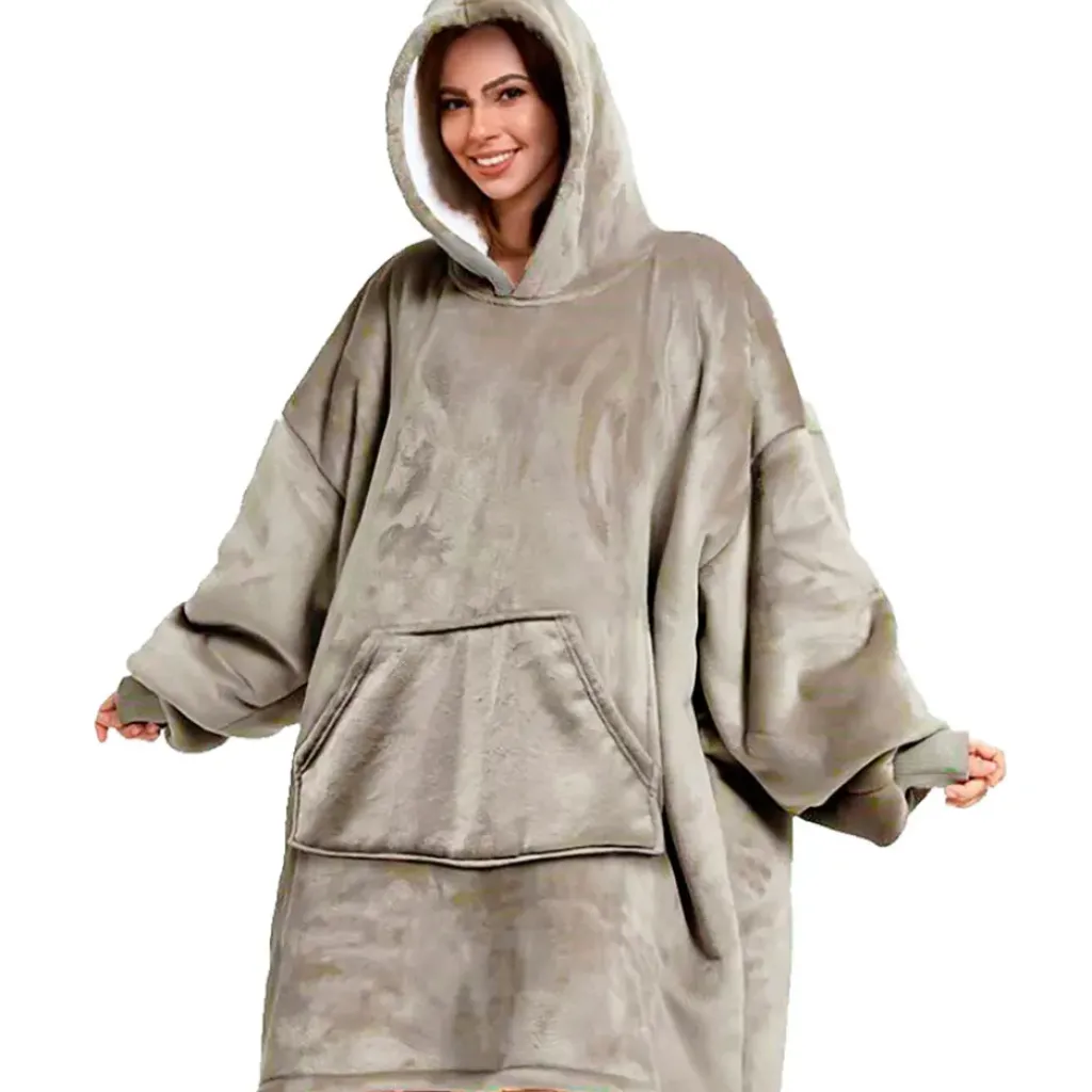 Découvrez notre sweat à capuche en tissu gris clair qui sert de plaid pour votre confort.