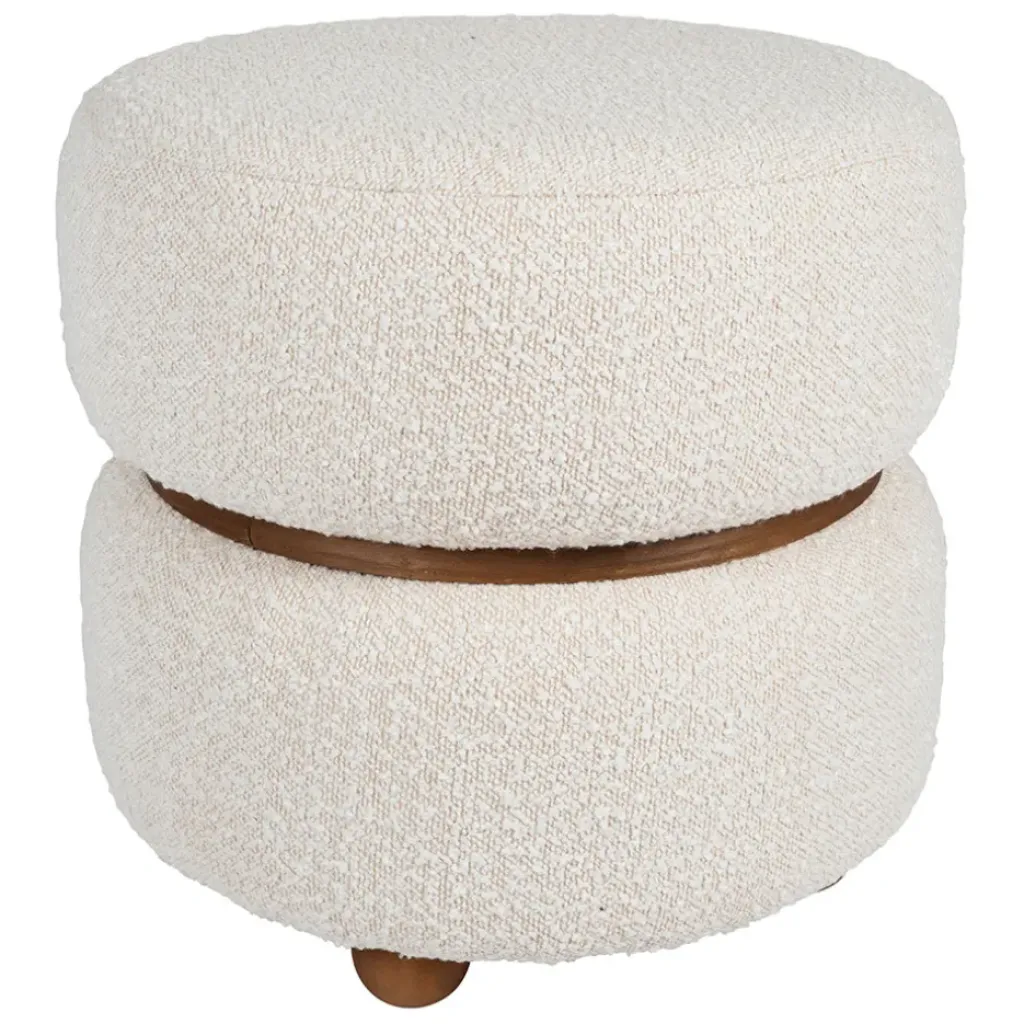 Le tabouret en tissu et pin blanc séduit par son allure naturelle et ses lignes épurées.