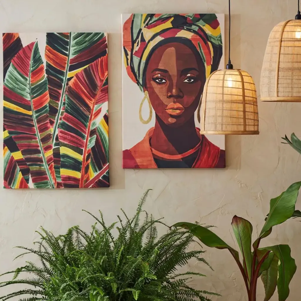 Découvrez le Tableau feuilles en tissu multicolore de dimensions 60x90cm – Seguia, une pièce essentielle pour apporter une touche de fraîcheur à votre décoration.