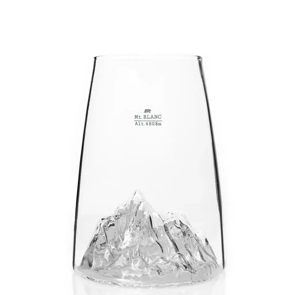 Ce verre aux reliefs topographiques est composé à 100% de verre cristallin de haute qualité et soufflé à la bouche. Dégustez toutes vos boissons au sommet du Mont Blanc !