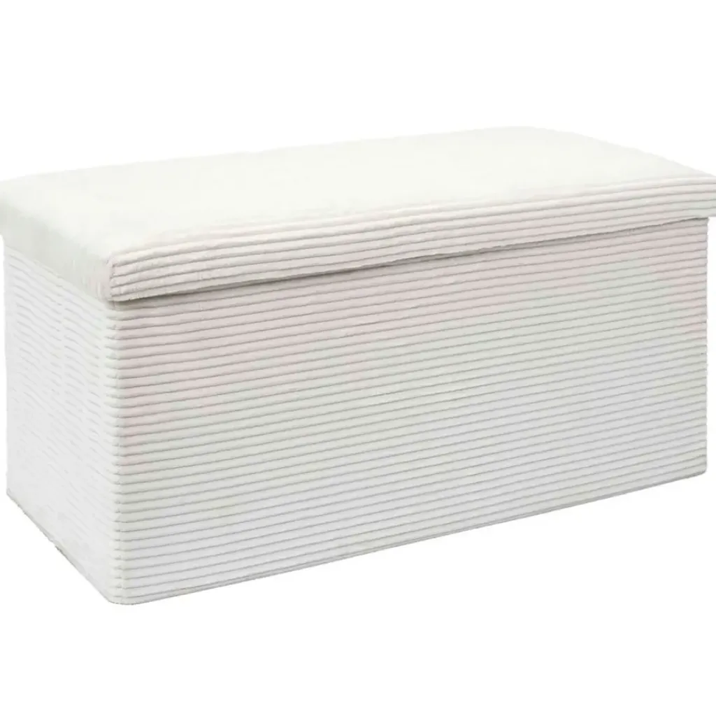 Découvrez le banc coffre pliable en tissu côtelé beige de la collection Scarlett, une solution intelligente pour optimiser l’espace dans votre maison.
