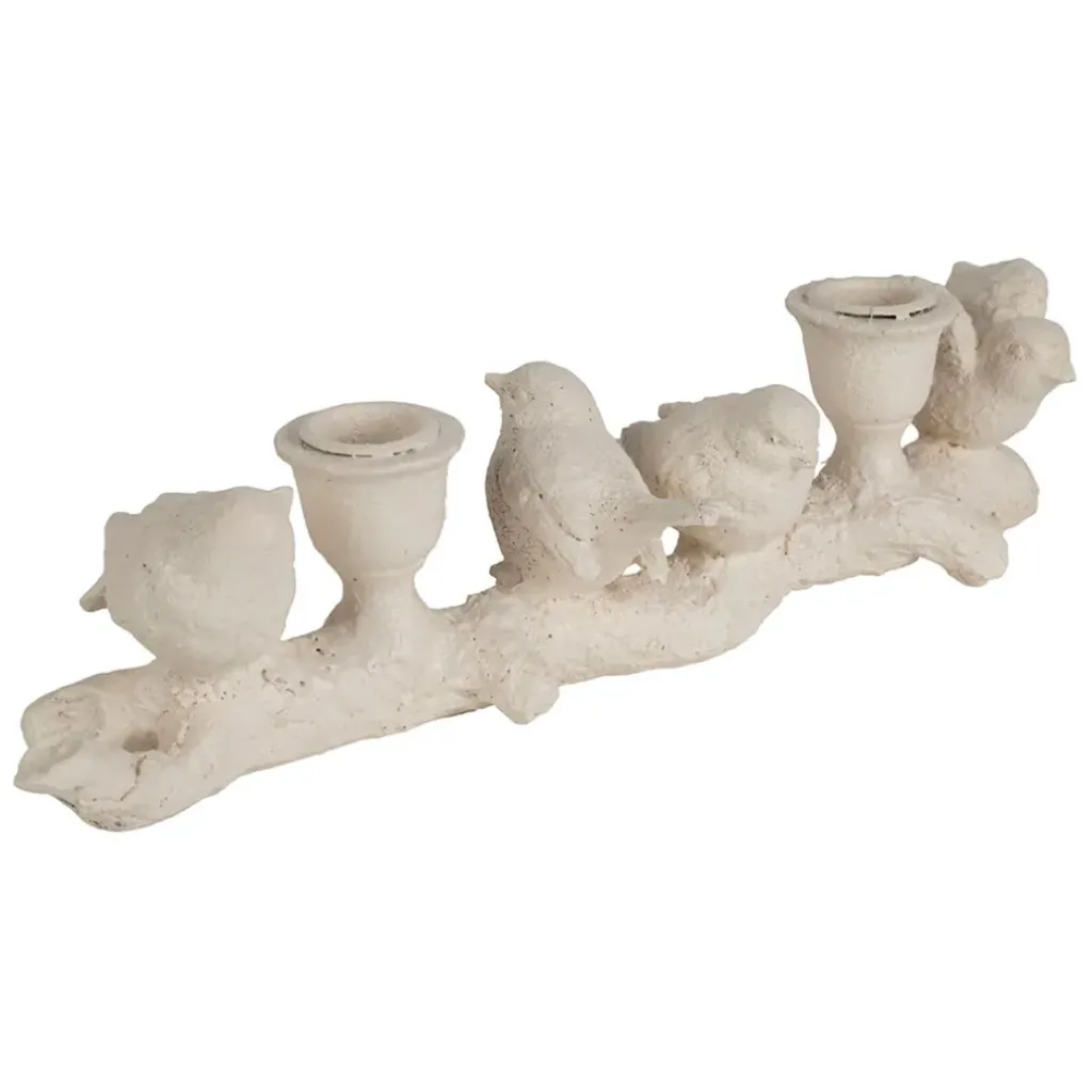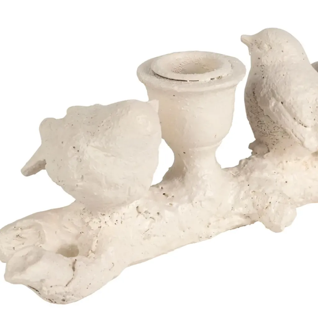 Fabriqué en résine écru, ce support à bougies illustre un moineau délicat, apportant une touche de nature et de chaleur à votre intérieur.