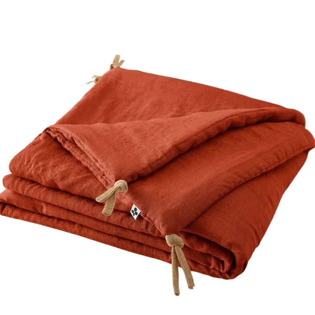 Découvrez notre magnifique bout de lit en lin lavé paprika de dimension 90x200cm de la collection Soline.