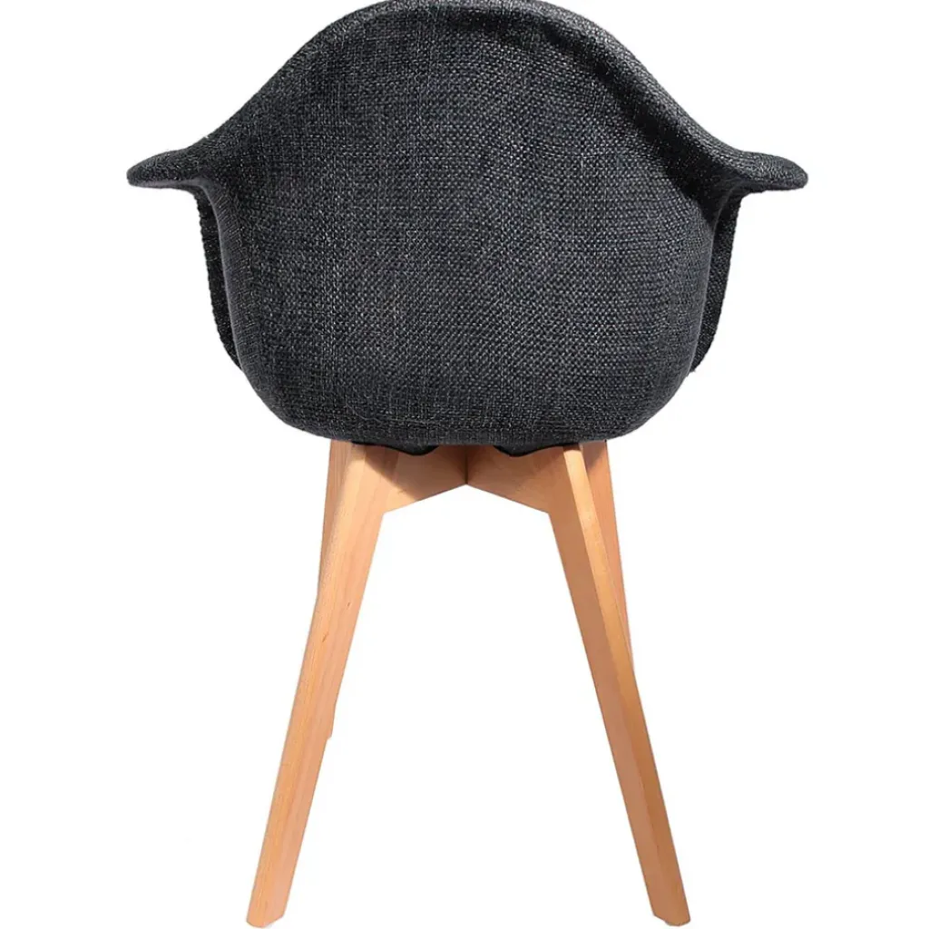 Cette chaise moderne est une version moderne d’une chaise à manger scandinave traditionnelle. Elle est dotée de pieds en bois et d’une assise confortable en tissu à grosses mailles noir. Idéale pour votre salle à manger ou votre bureau.Métal – Fer – Textile – Polyester – Bois contreplaqué – Rembourrage – PU