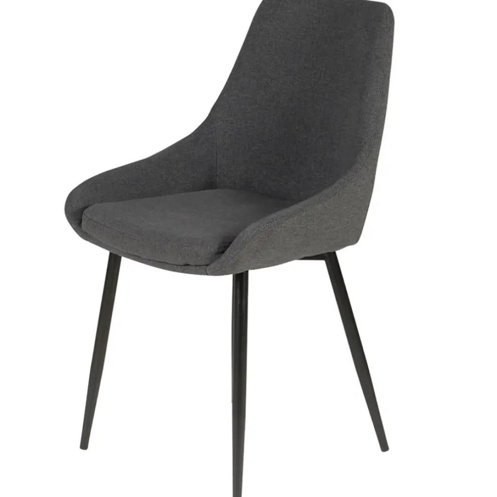 Cette chaise, en tissu gris foncé, sera parfaite dans un intérieur industriel et intemporel.Structure d’assise : contreplaqué, mousse polyuréthane densité 24 kg/m3 Revêtement velours : 100 % polyester Pieds : acier, peinture époxy