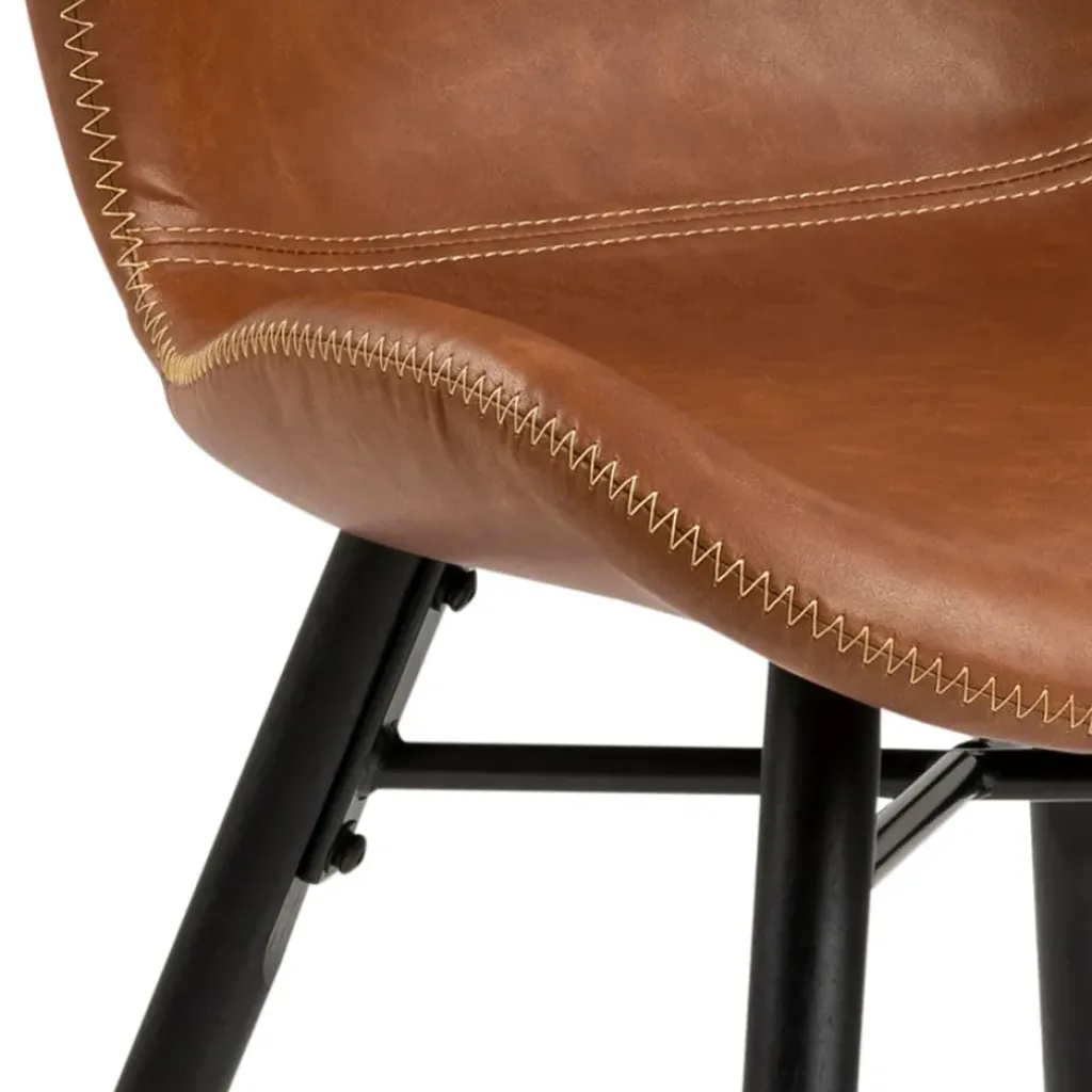 un style industriel qui se mariera parfaitement à votre intérieur.PU aspect cuir rétro. Piètement en bois d’hévéa laqué NC noir mat. Avec coutures crème, coutures zigzag et zip.