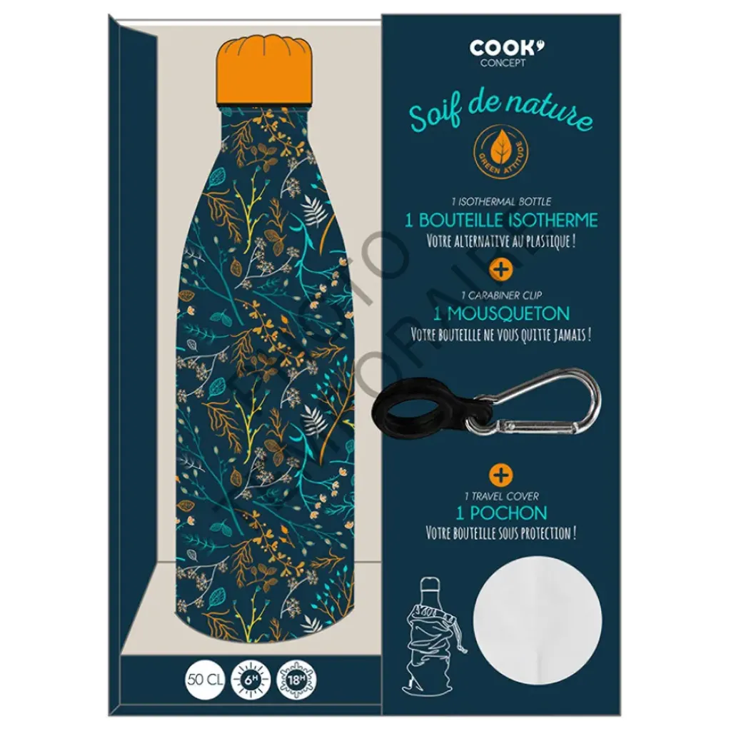 Venez découvrir notre Coffret bouteille isotherme fleurie 50cl de la marque Cook Concept à découvrir sur Fabrique de Stylesverre boroscillicate, coton, acier inoxydable