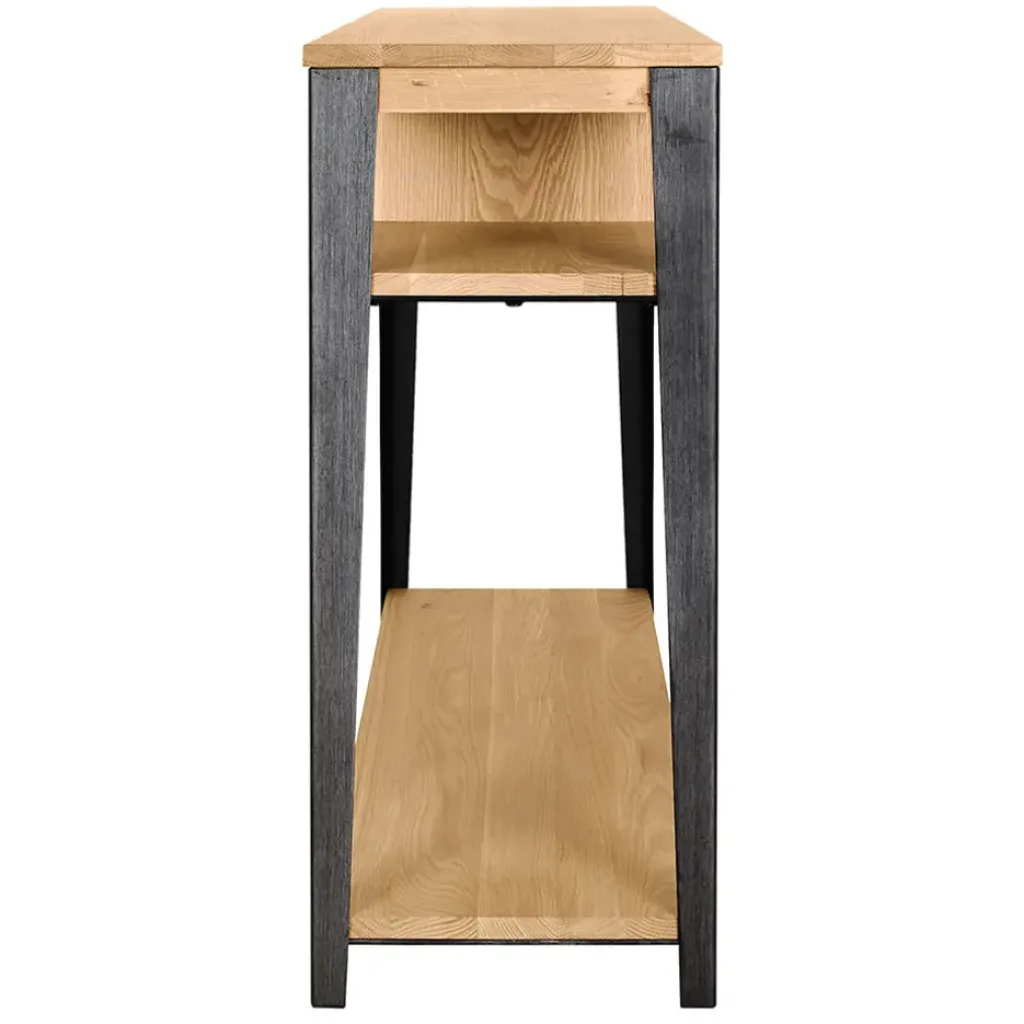 Vous serez séduit par son chêne massif vernis associé à ses pieds en acier peint à l’huile et brossé à la main.