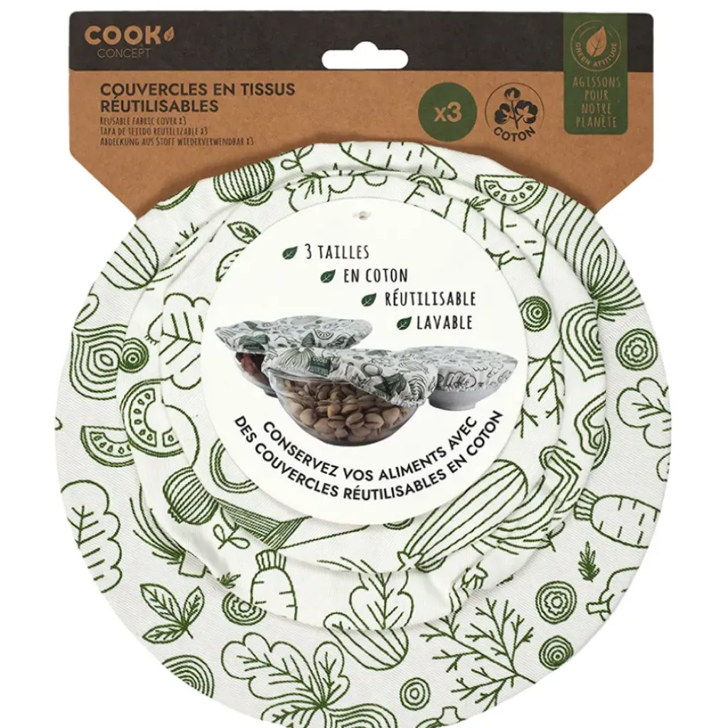 Découvrez notre ensemble de trois couvercles en tissu réutilisables, une alternative écologique et pratique aux emballages jetables.