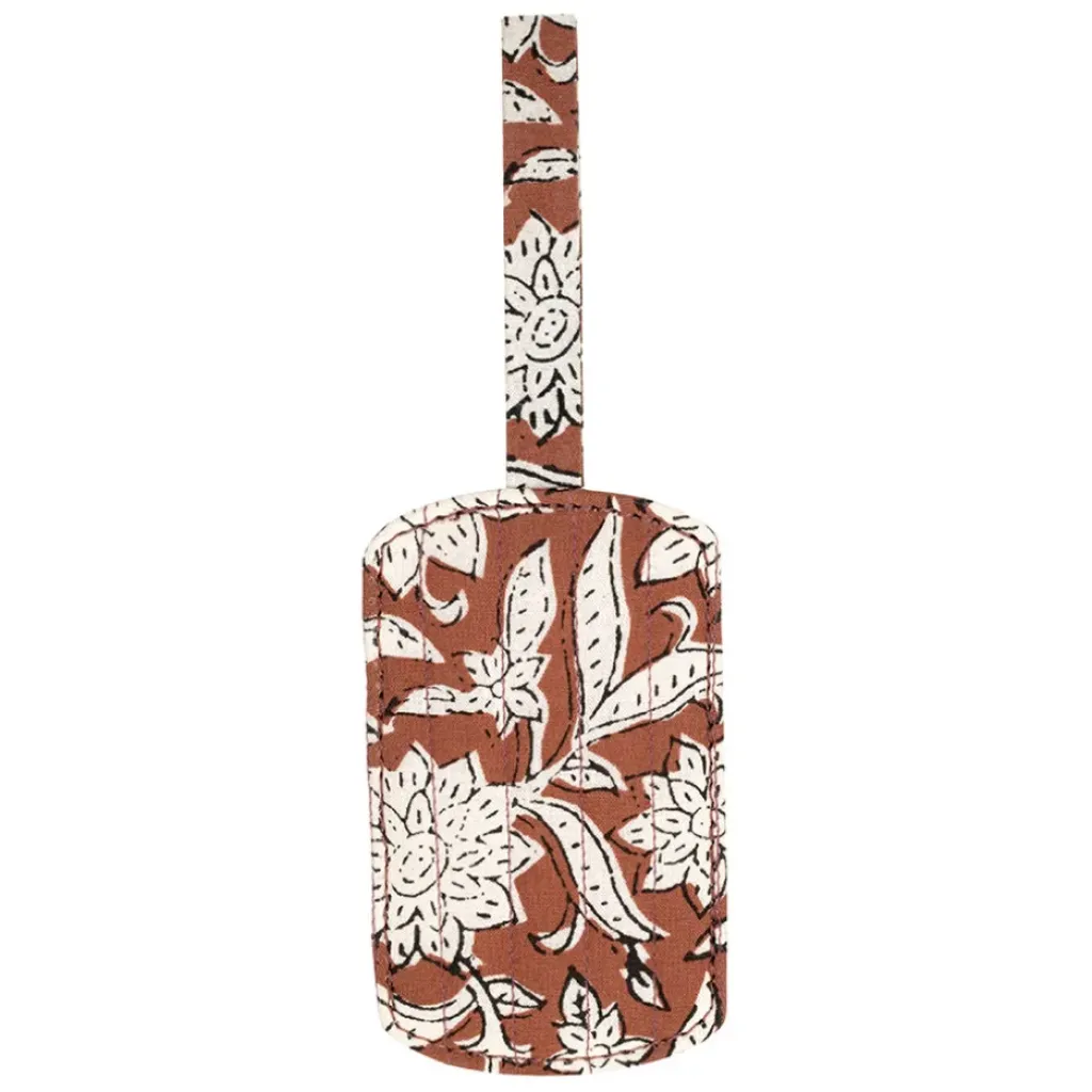 Découvrez notre étiquette bagage en coton rouge, Flaura, un accessoire indispensable pour tous vos voyages.