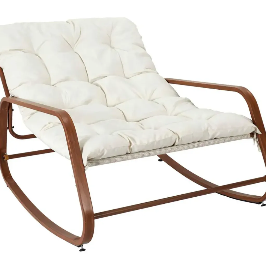 Découvrez ce magnifique fauteuil de jardin à bascule, un mélange parfait de style et de confort, conçu aussi bien pour l’extérieur que pour l’intérieur.