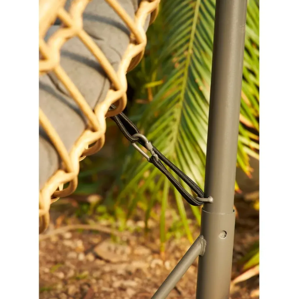 A la fois pièce déco forte avec son allure aerienne, mais aussi spot incontournable pour lézarder au soleil, l’oeuf suspendu Riga est idéal pour tout exterieur.Composition du matériau: 9mm tour complet + 9mm plat en osier PE. (90% PE- 5% PP-5% antioxidant-anti-ultravilolet agent et toner).