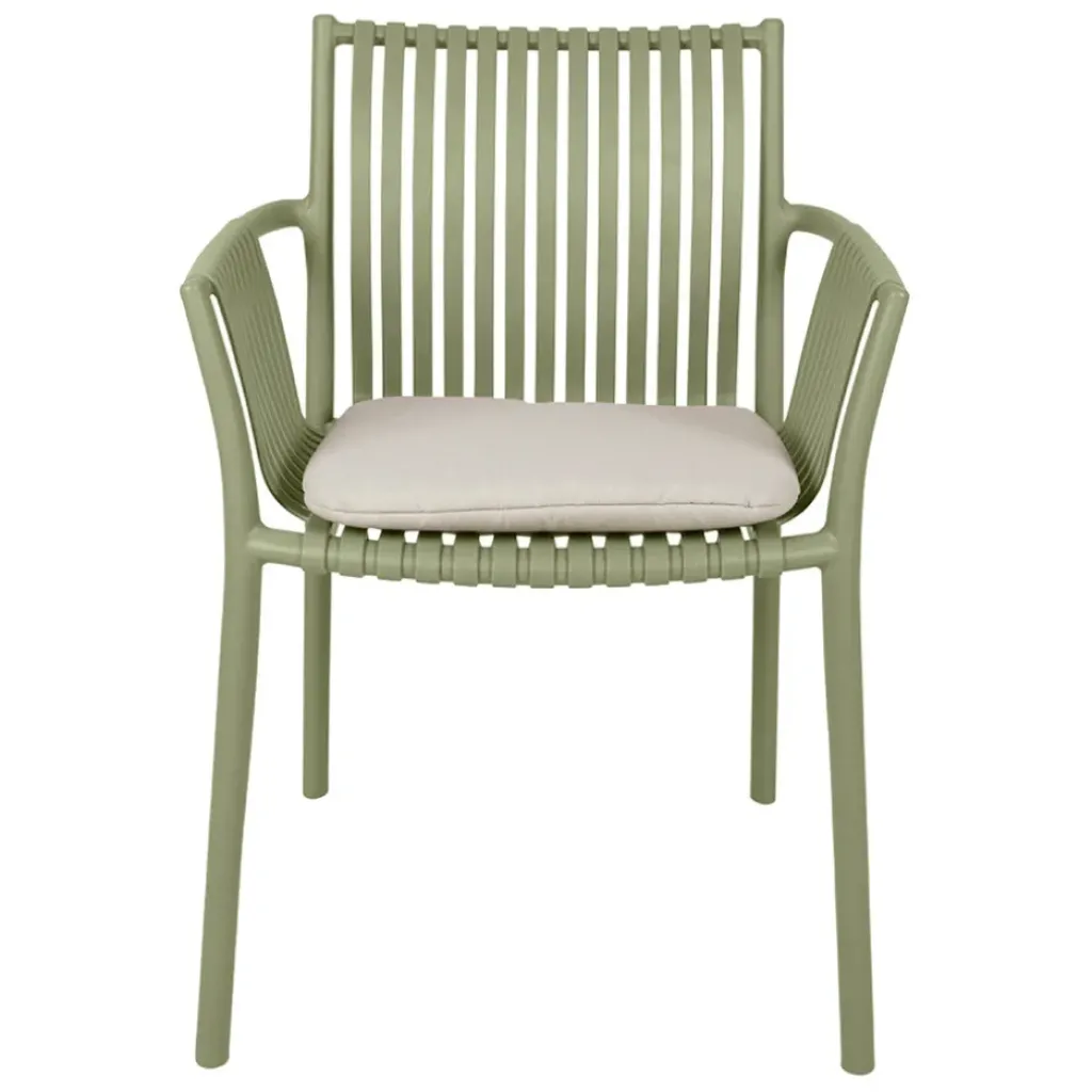 Découvrez le confort inégalé du fauteuil d’extérieur kaki avec coussin en tissu.