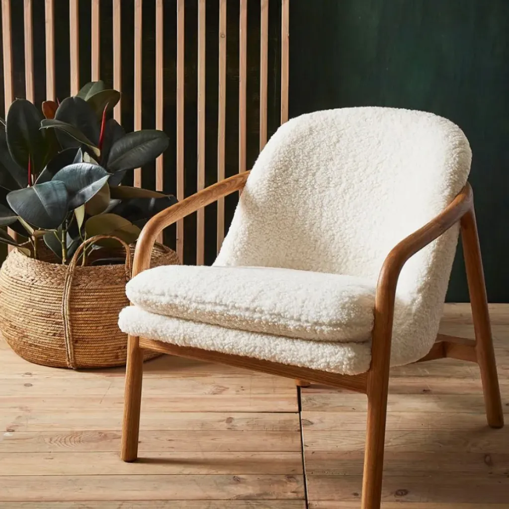 Element est un fauteuil moderne avec une sensation de cocooning. Cette pièce de couleur ivoire crémeuse avec des pieds en bois de frêne sera parfait dans votre espace de vie.