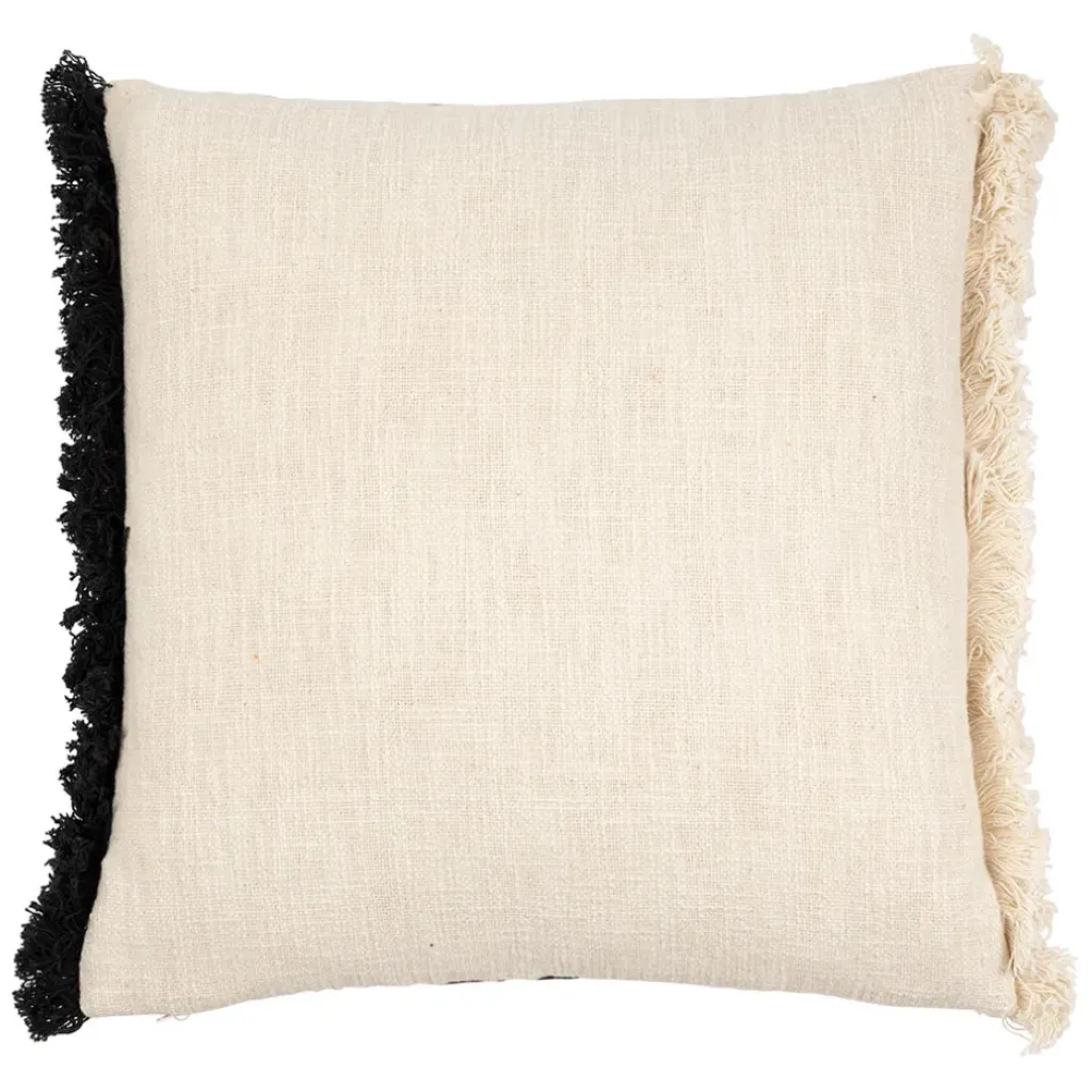 Coussin brodé écru et noir de dimensions 45x45cm avec housse en madeira. Parfait pour ajouter une touche élégante à votre intérieur.Coton / Cotton