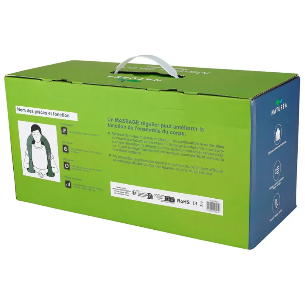 Grâce à sa conception ergonomique, ce masseur s’adapte parfaitement à la courbe naturelle de votre cou, offrant un soulagement efficace des tensions accumulées au fil de la journée.