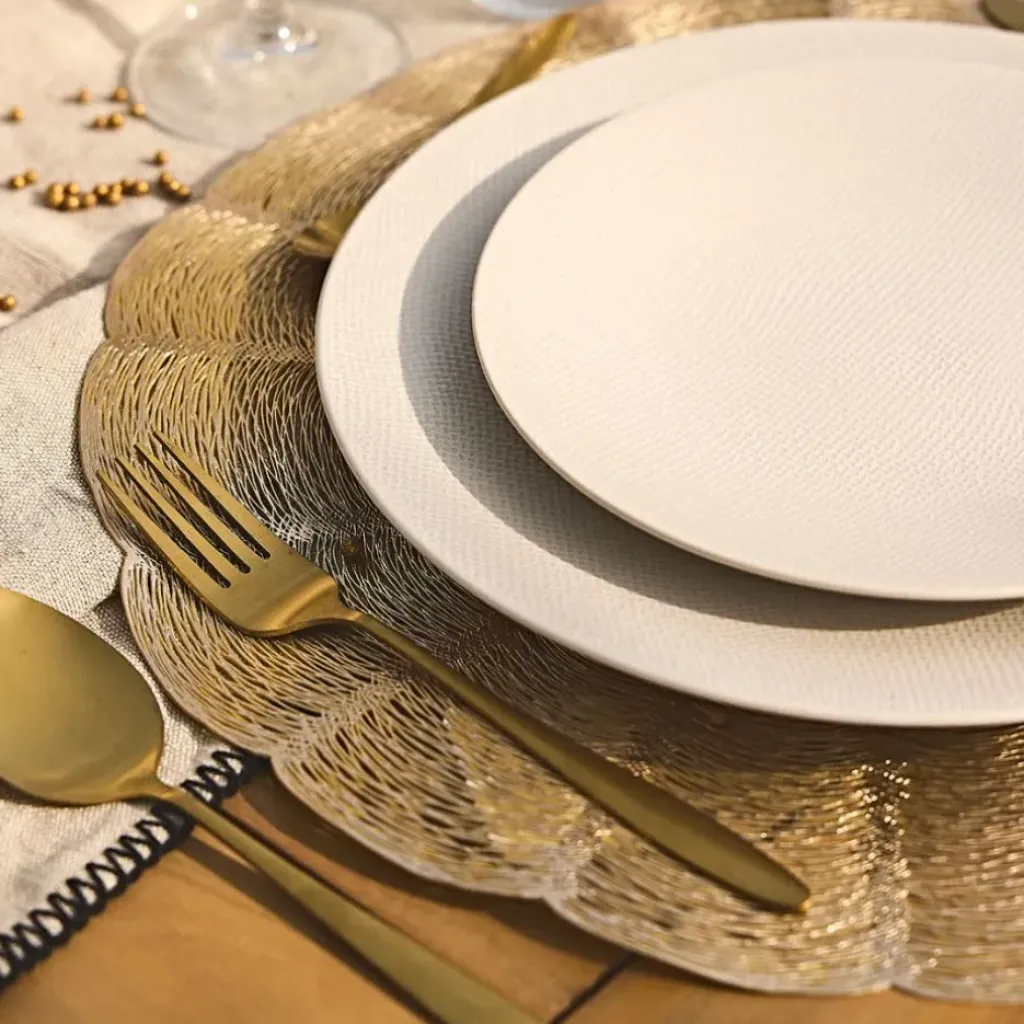 La finition dorée apporte une touche de glamour à votre vaisselle, créant une atmosphère chaleureuse et accueillante pour tous vos convives.