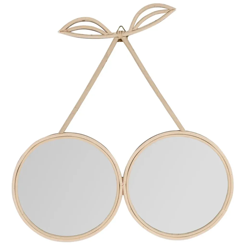 Découvrez le magnifique miroir cerise en rotin et panneau de bois de dimensions 44x47cm.