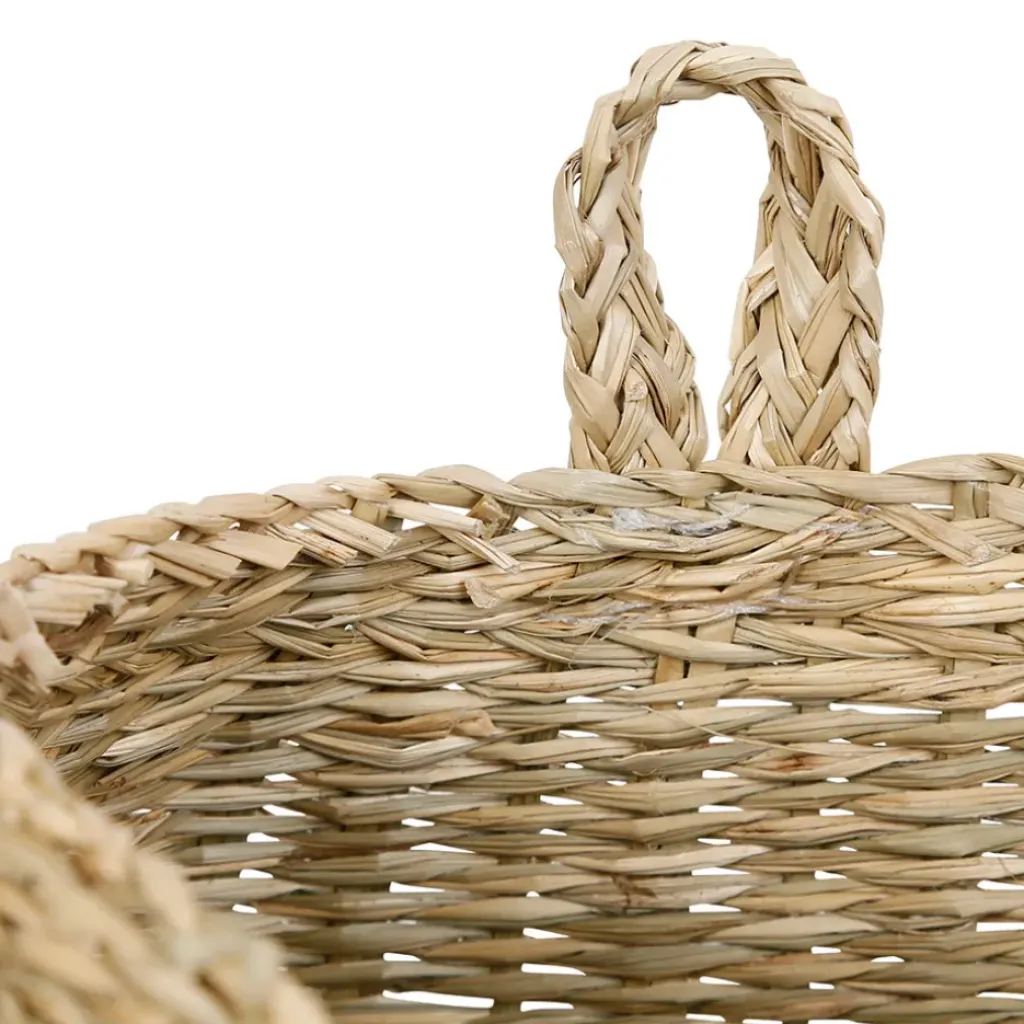 Panier mural x2 en jonc de mer de taille 31x26x21 – 18x13x13cm, au design naturel inspiré des récifs. Idéal pour organiser et décorer votre espace.Jacinthe d’eau + fer