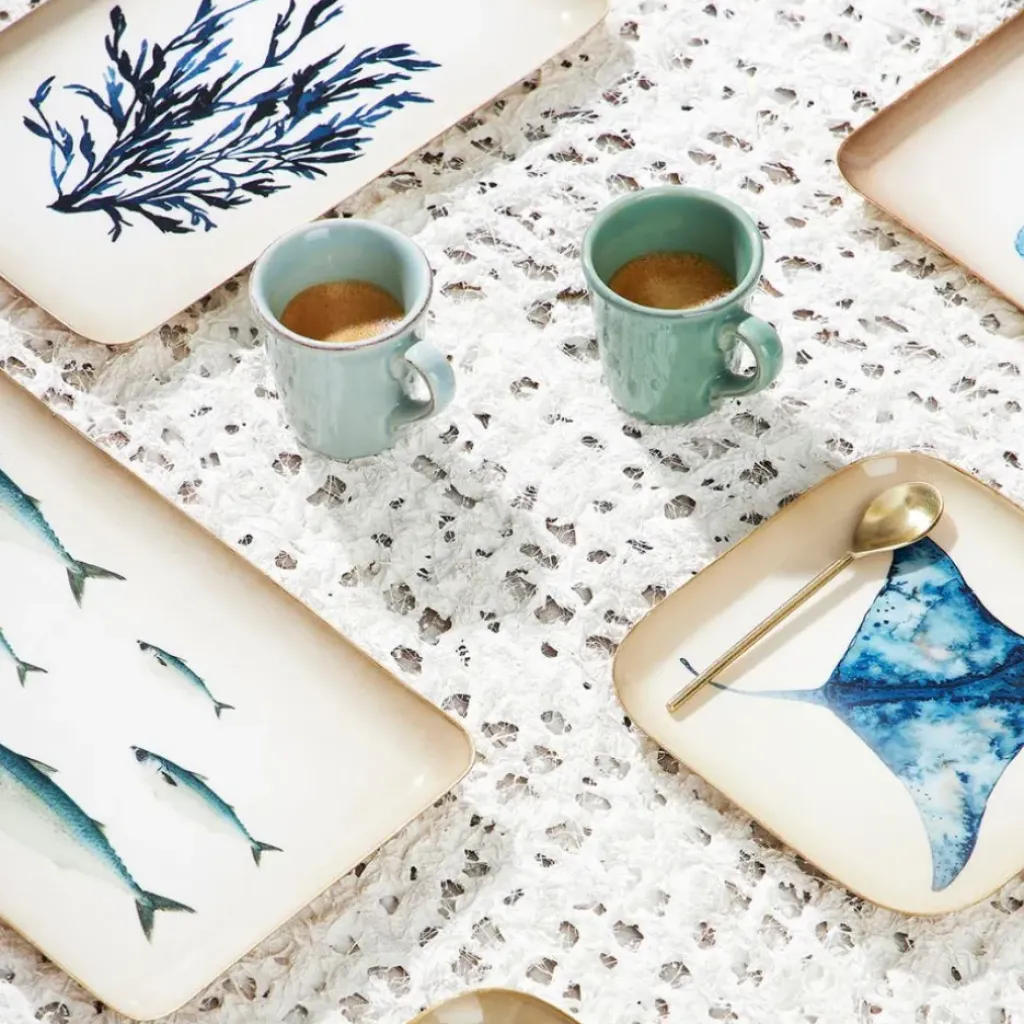 Découvrez ce magnifique plateau en fer bleu marine de dimensions 15×25,5 cm de la collection Estran.