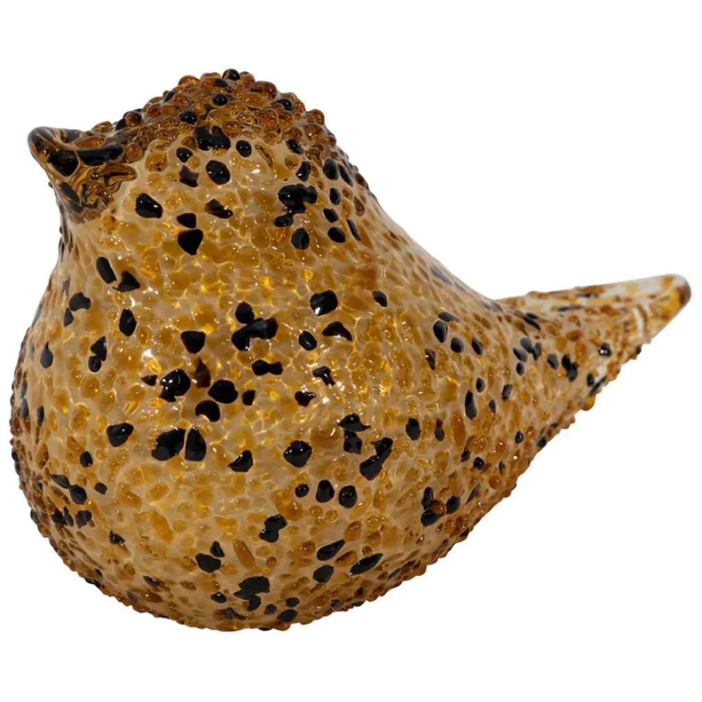 Ajoutez une touche de charme aviaire à votre espace de travail avec cet exceptionnel presse-papier en verre, conçu en forme de moineau dans des tons chauds d’ambre et de noir.