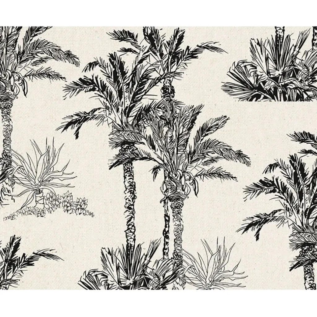 Les motifs de palmiers noirs ajoutent une touche exotique et moderne à votre décoration, s’intégrant naturellement avec divers styles déco, du plus sobre au plus vibrant.
