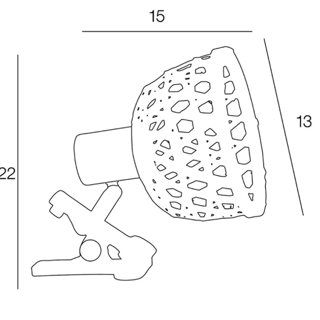 Spot à pince base en métal peint avec abat-jour en rotin. Tête articulée et pince en plastique. IP20. H15cm-L13cm-P22cm. Classe 2. E14-40W.métal et bambou