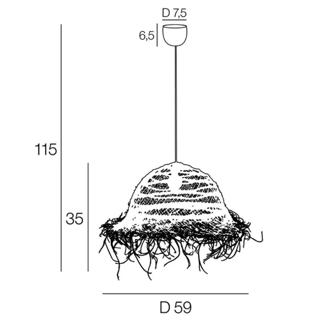 Suspension forme conique ajourée en matière Alfa fibres végétales grand modèle. Coloris : naturel. IP20. D59cm – H39cm – HT115cm. Classe 2. E27-15W.alfa