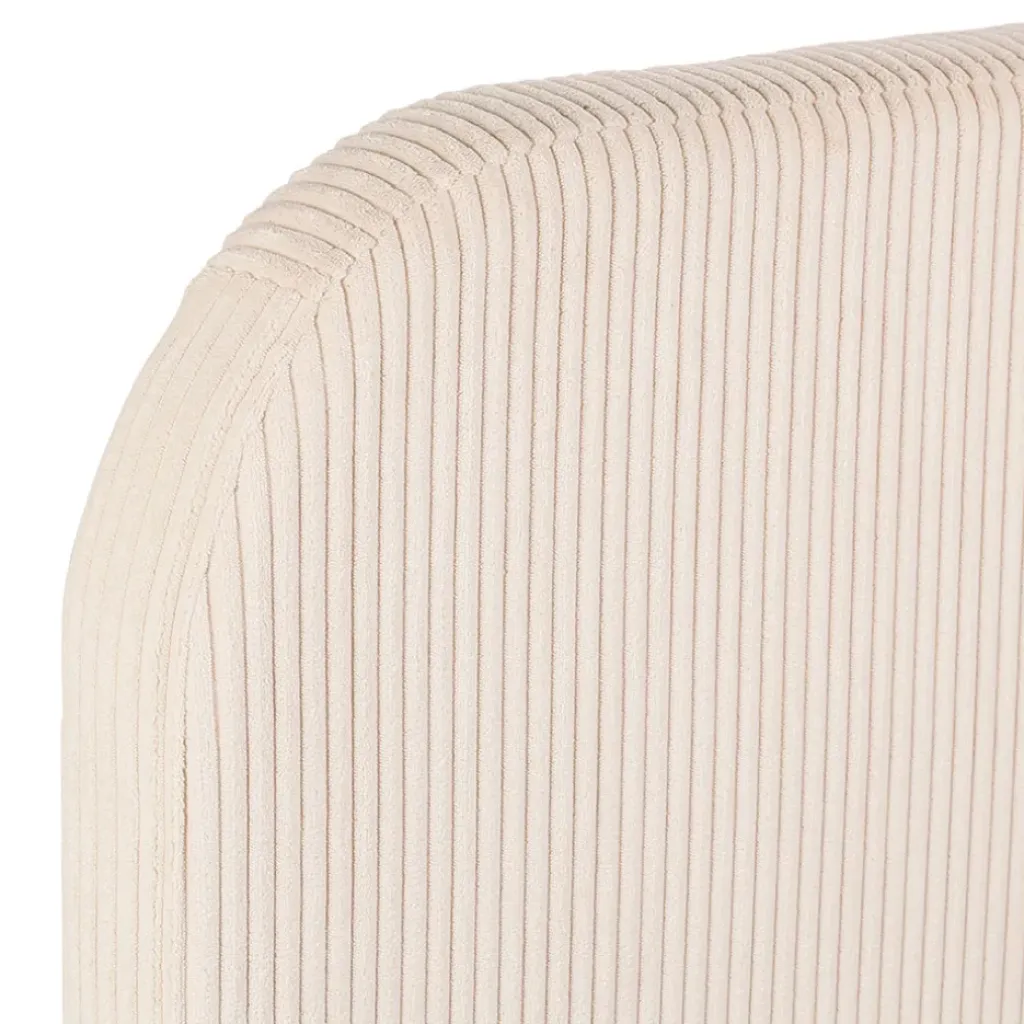 Sa matière en hévéa assure une robustesse et une durabilité remarquables, tandis que le tissu côtelé crée un effet visuel chaleureux et accueillant.