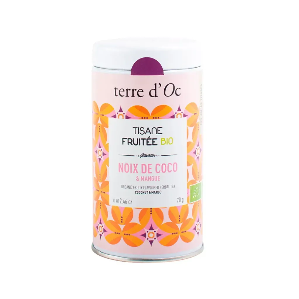 Cette infusion associe les effluves onctueux de la noix de coco à la douceur juteuse de la mangue. Un duo tropical aux notes exotiques qui transporte instantanément vers des horizons ensoleillés. Plantes, fleurs et morceaux de fruits bio. Sans théineSucre, sirop de glucose, acidifiant : acide citrique, arôme naturel : fraise, colorants naturels : E100, E120, E160a, E163, spiruline concentrée. Peut contenir des traces de blanc d’œuf.